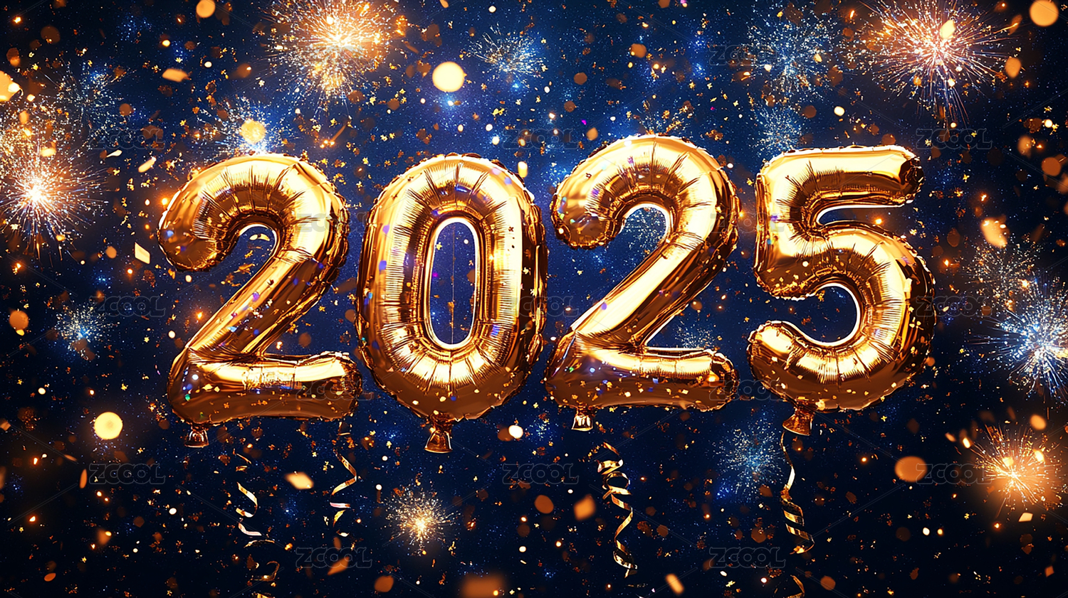 快乐,新年,数字,2025,气球,烟花,新年快乐,元旦,2025年,喜庆