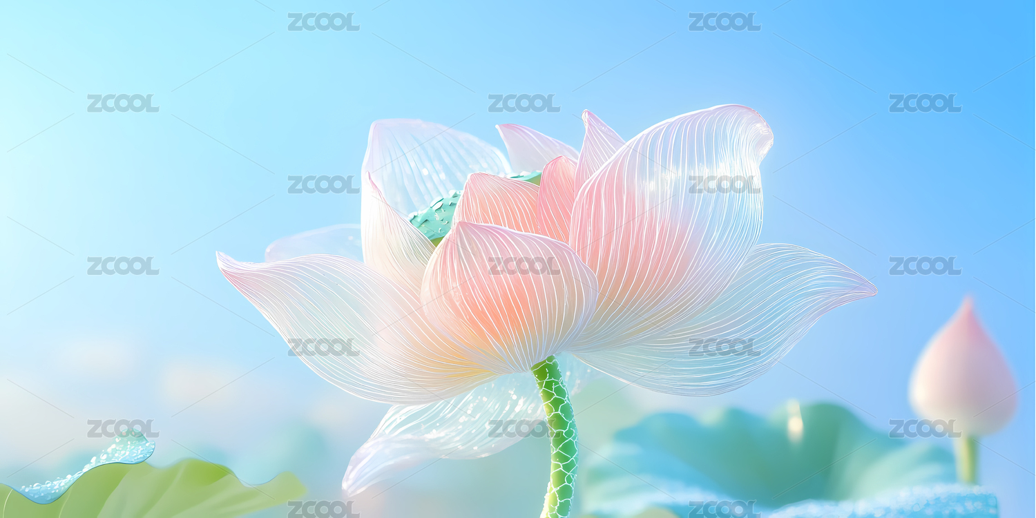 夏天透明玻璃荷花背景