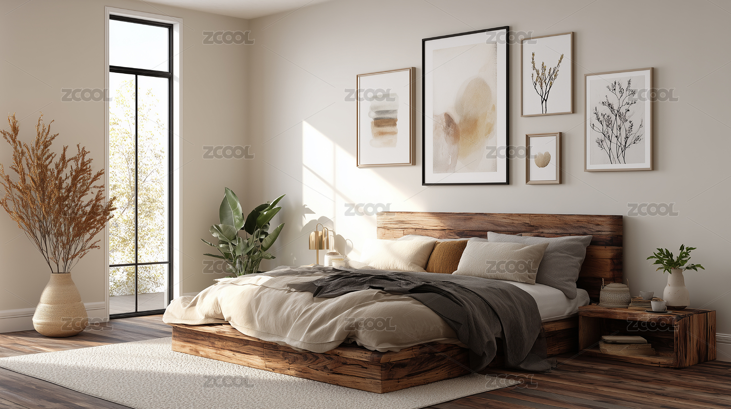 自然简约田园风现代卧室室内场景