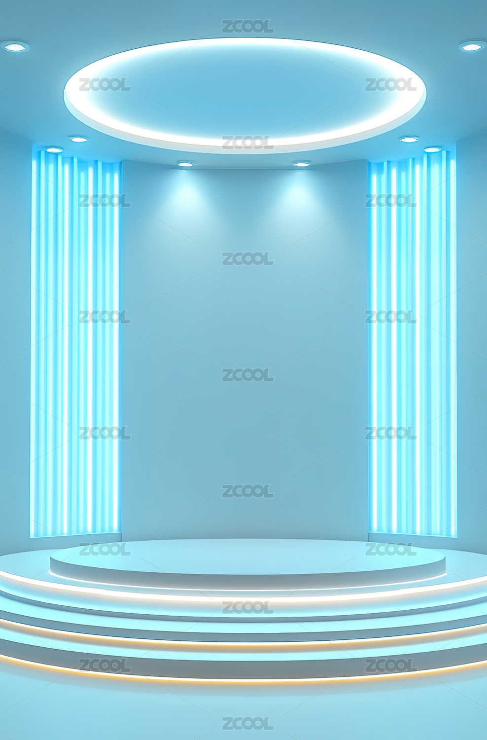蓝色霓虹灯照亮的圆形阶梯舞台