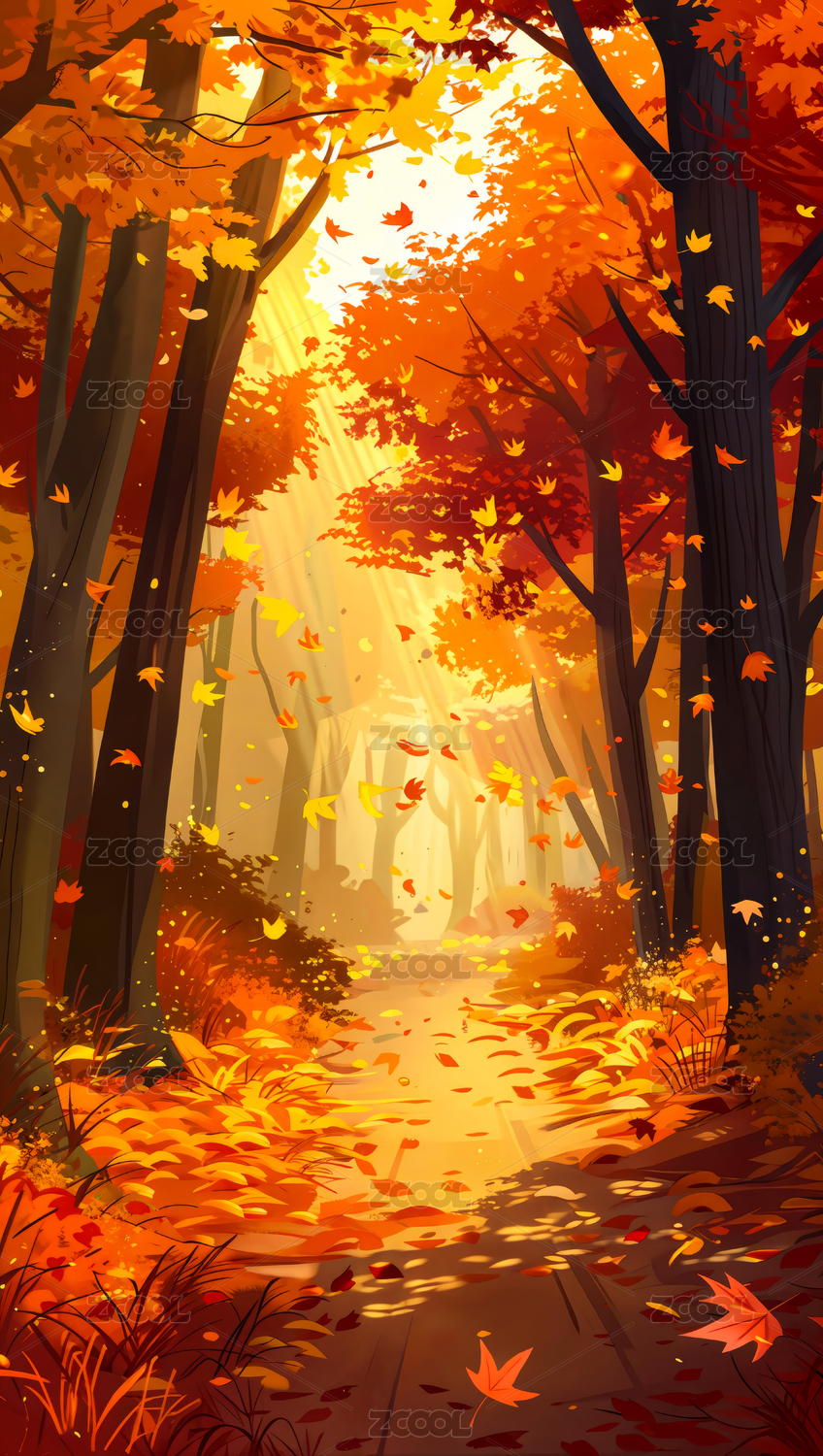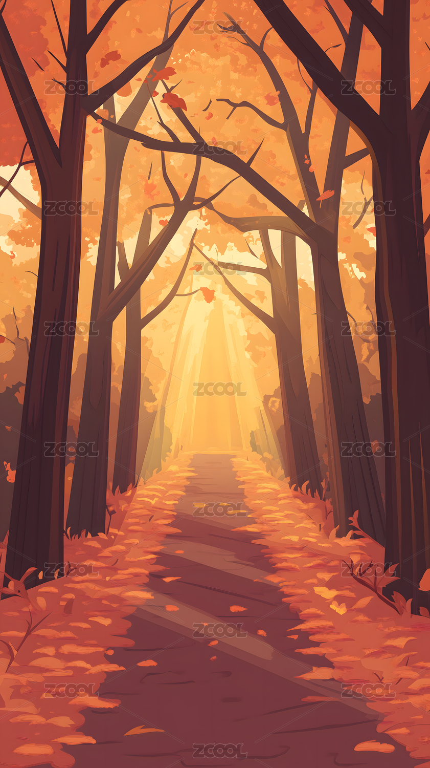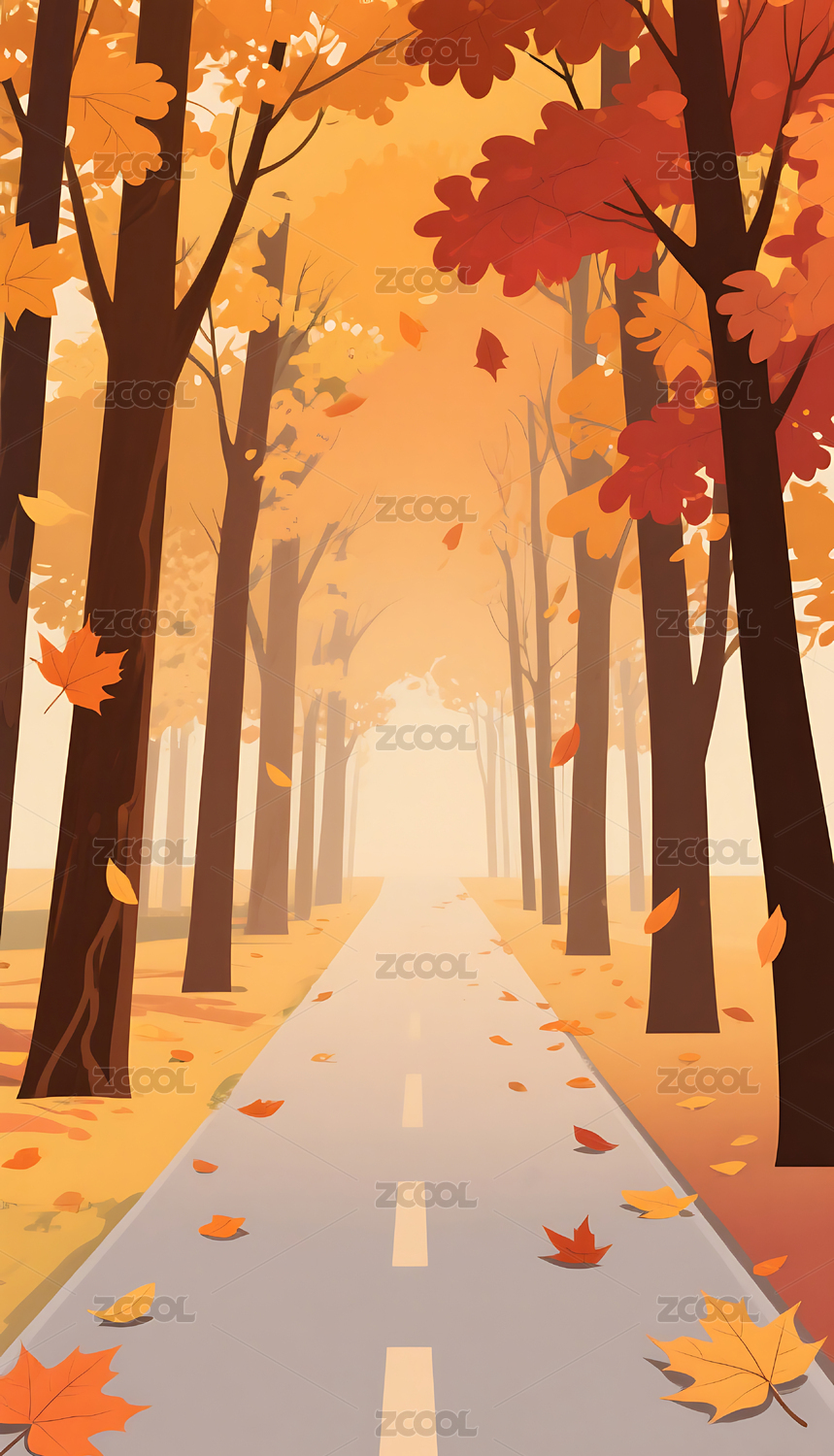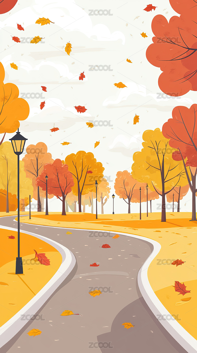 秋天小路景色插画
