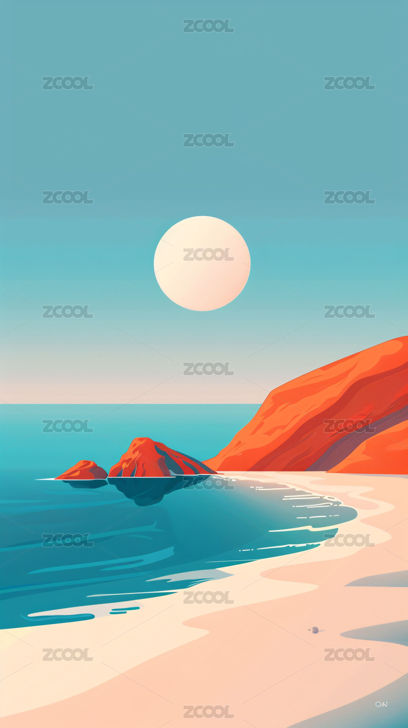 天空,自然,概念,插画,水,海洋,太阳,自然美,海滩,旅行