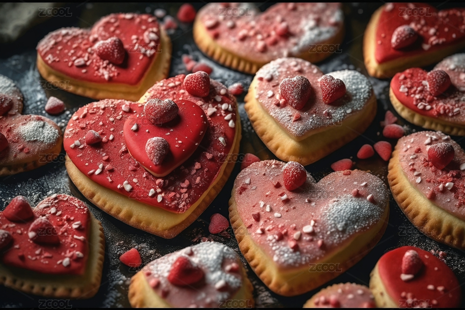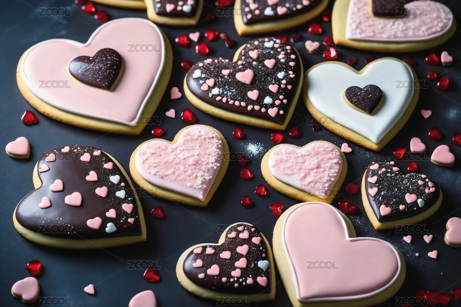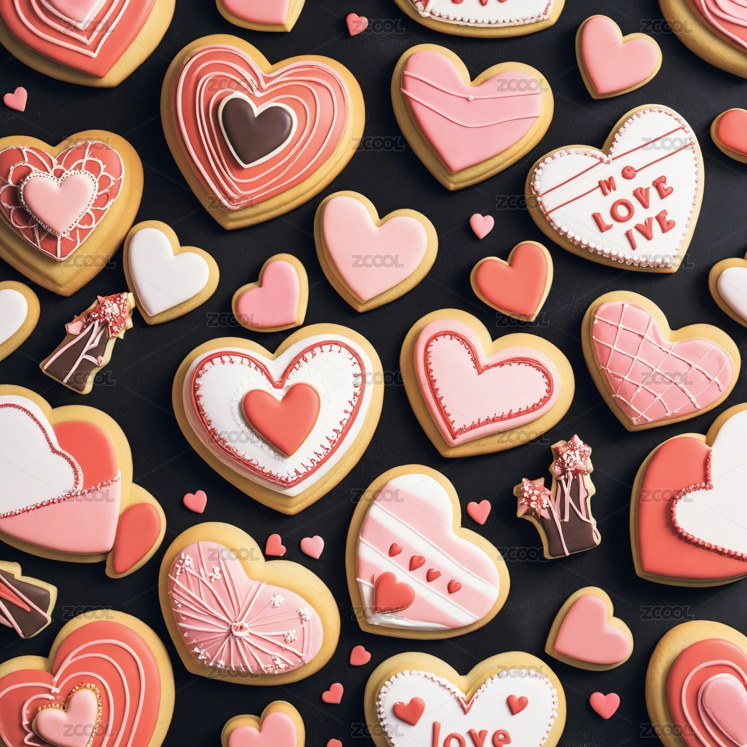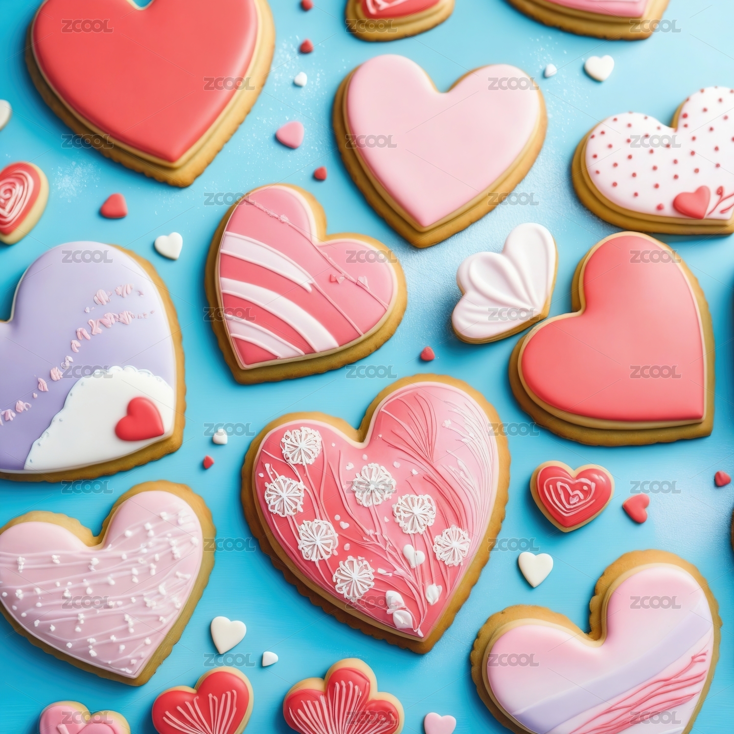 饼干,心形,红色,粉色,糖霜,点缀,甜蜜,爱情,浪漫,美食