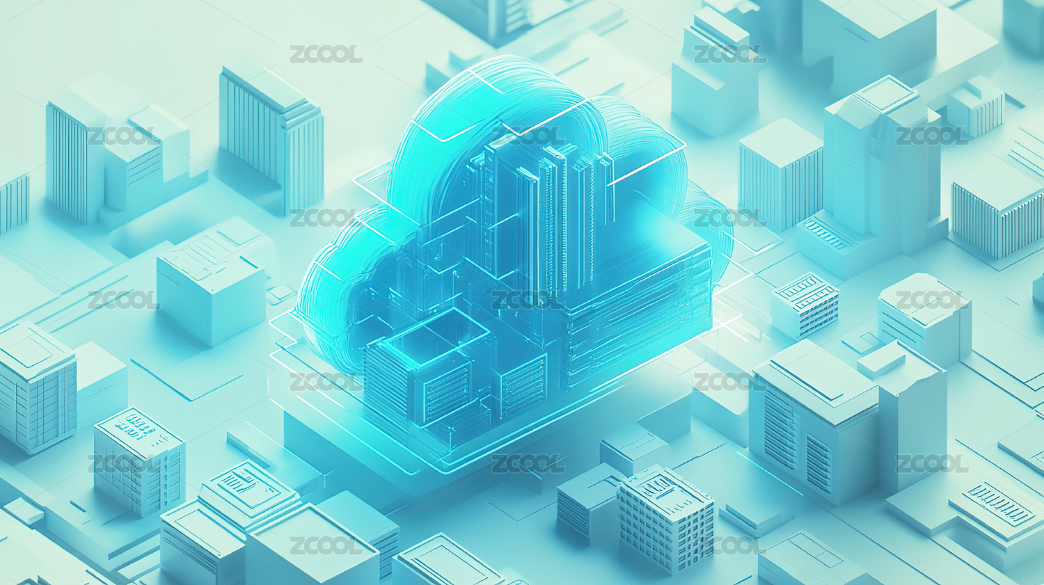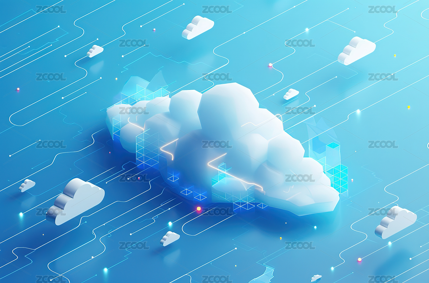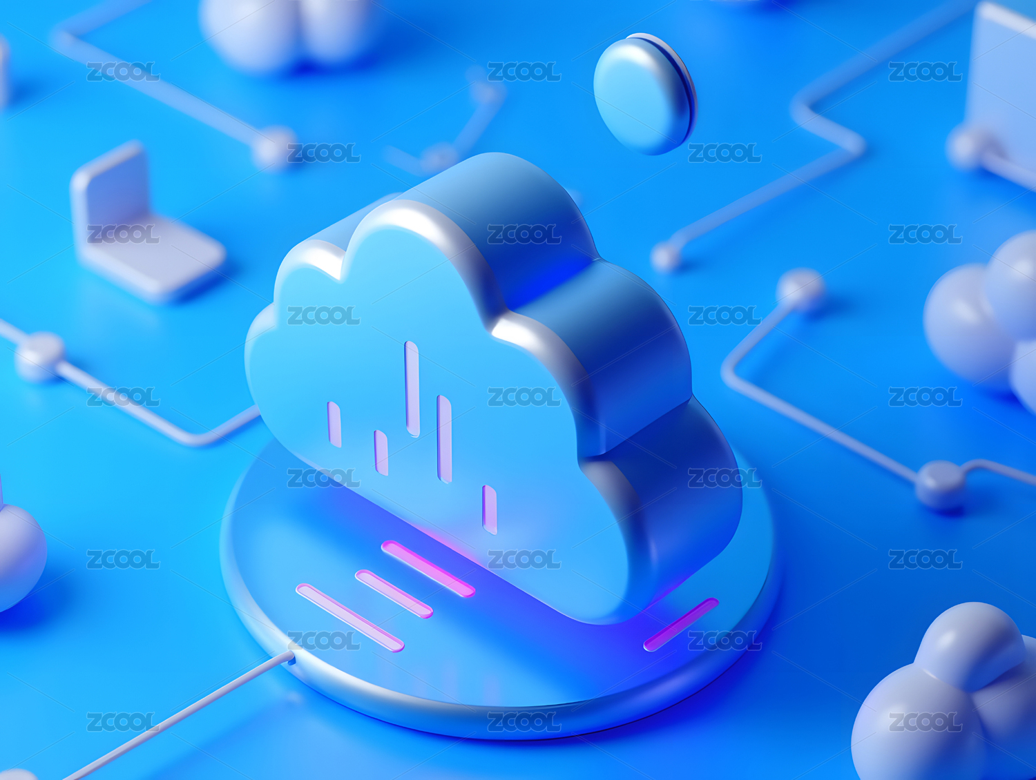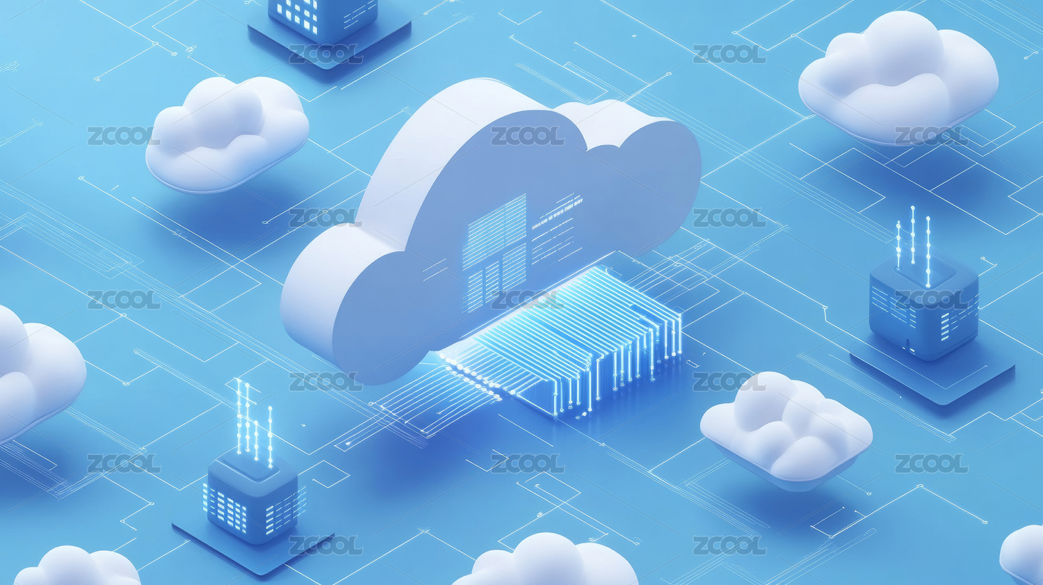 3d渐变玻璃感云计算海报