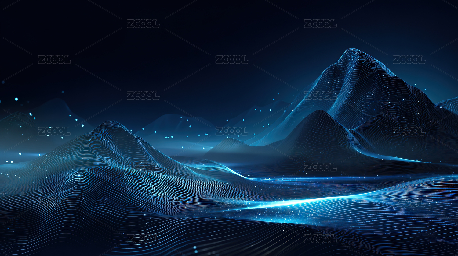 蓝色光点构成的山脉景观