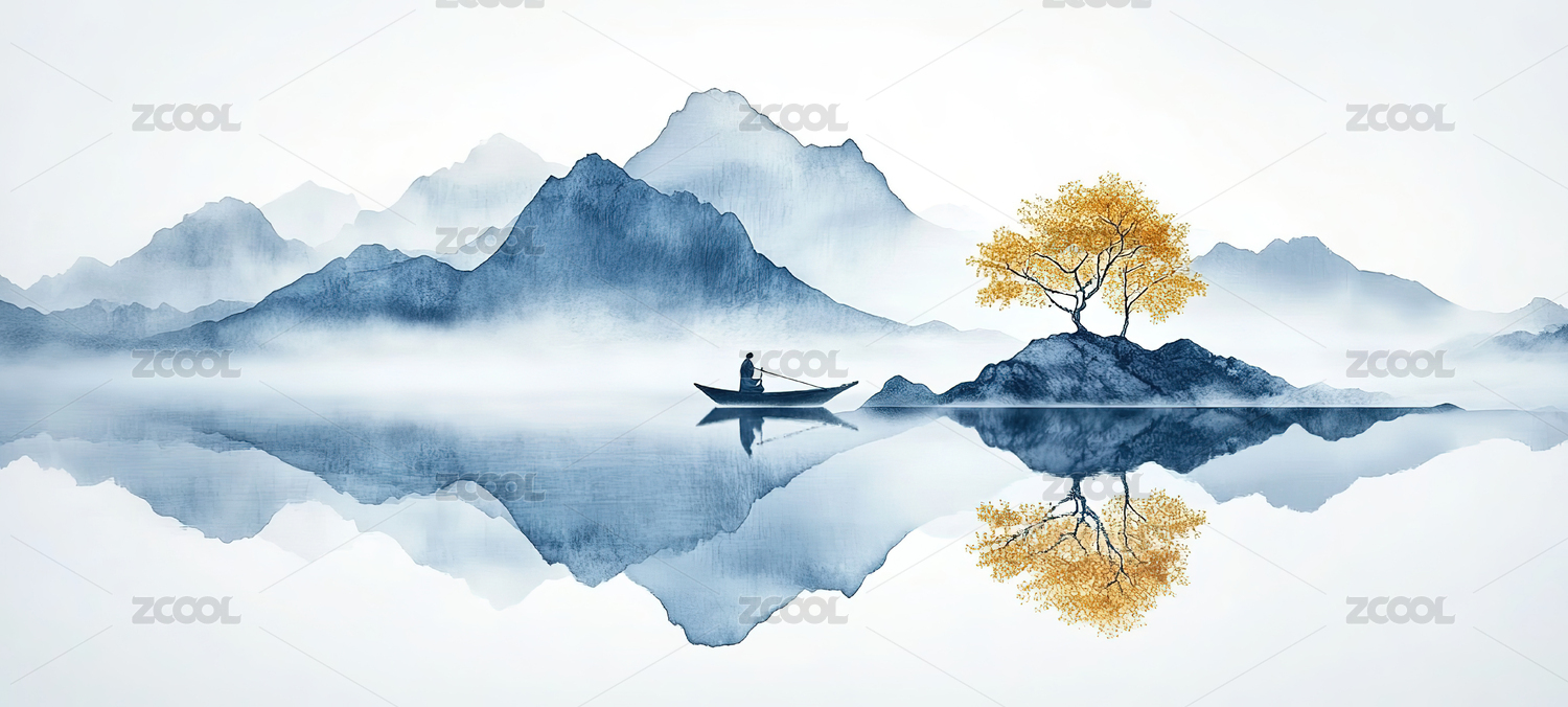 中国风水墨意境自然风景创意插画