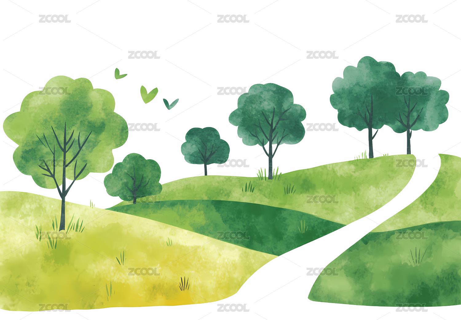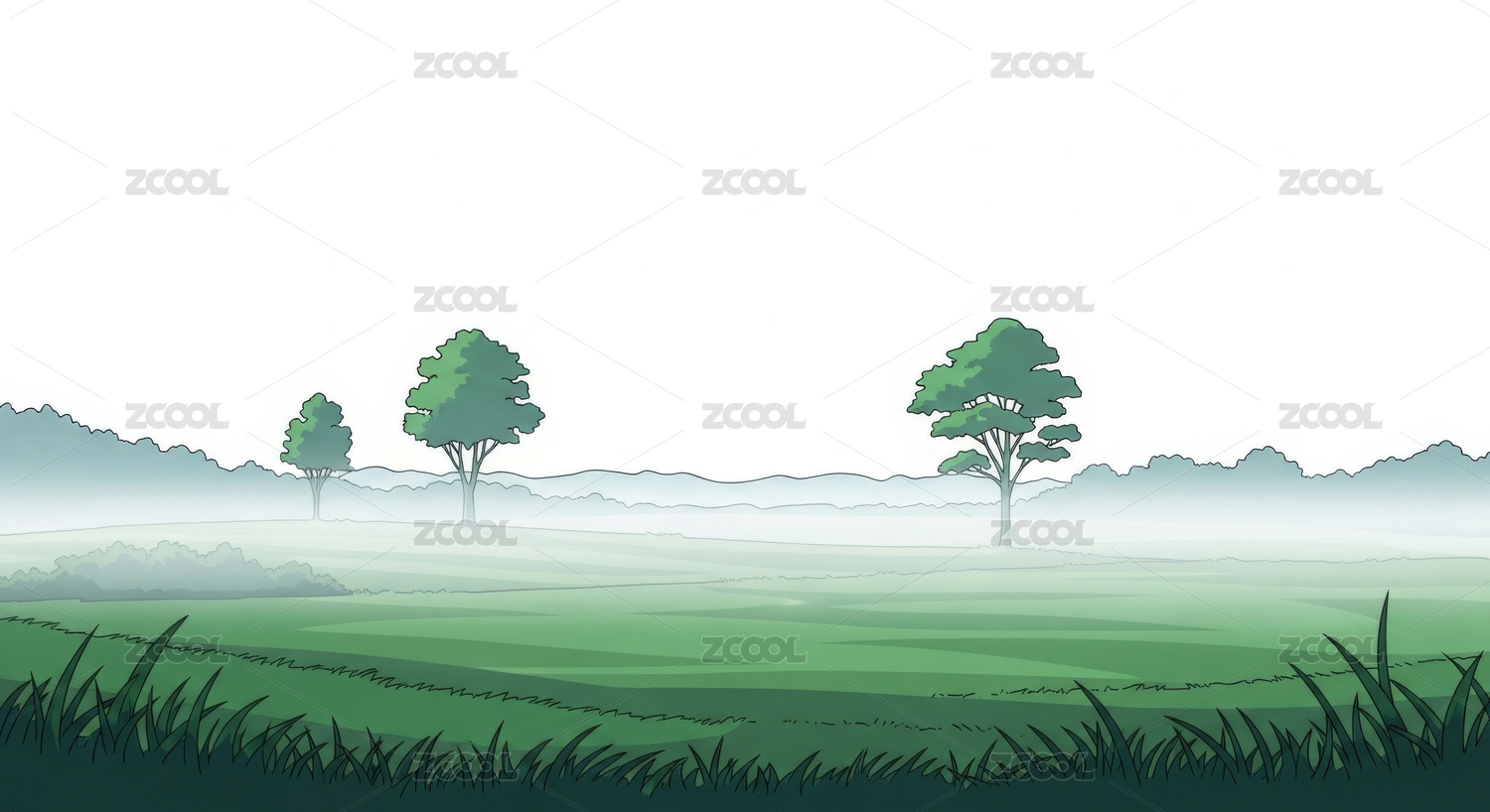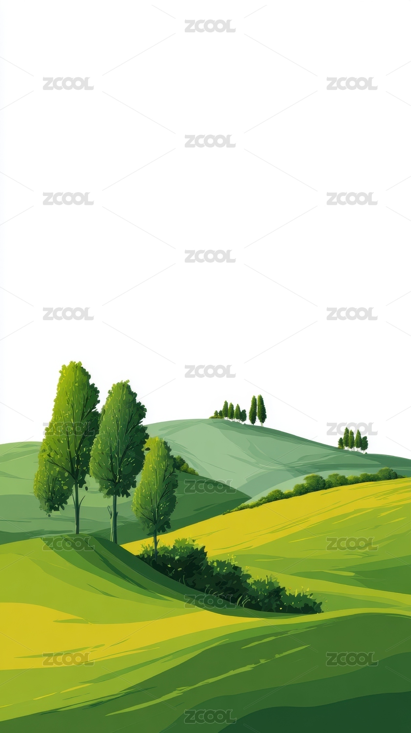夏天白天黄绿色寂静安静的田野3D插画绘画