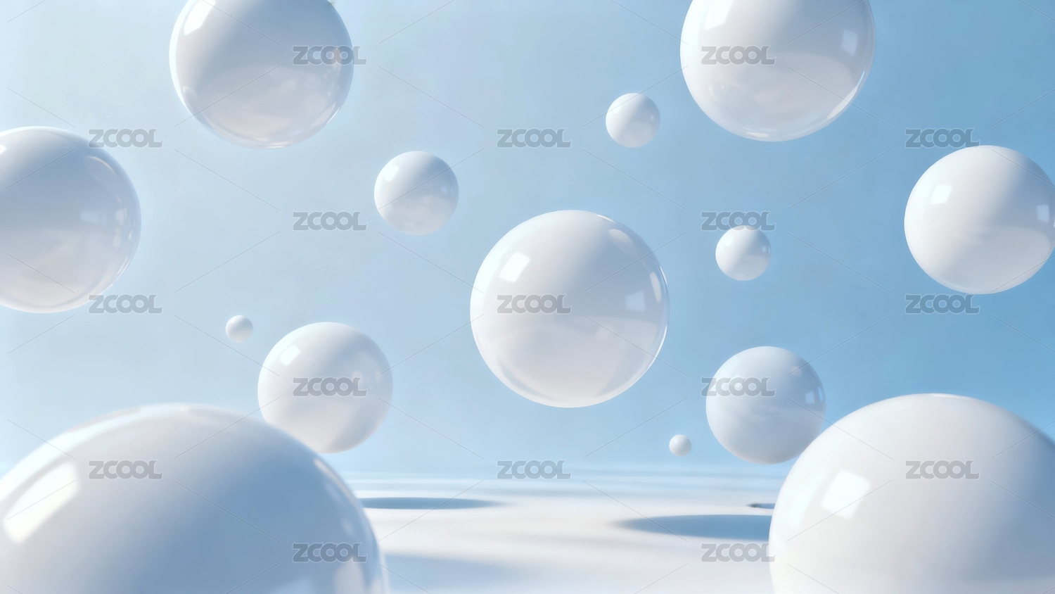 浅蓝色背景上的漂浮白色球体