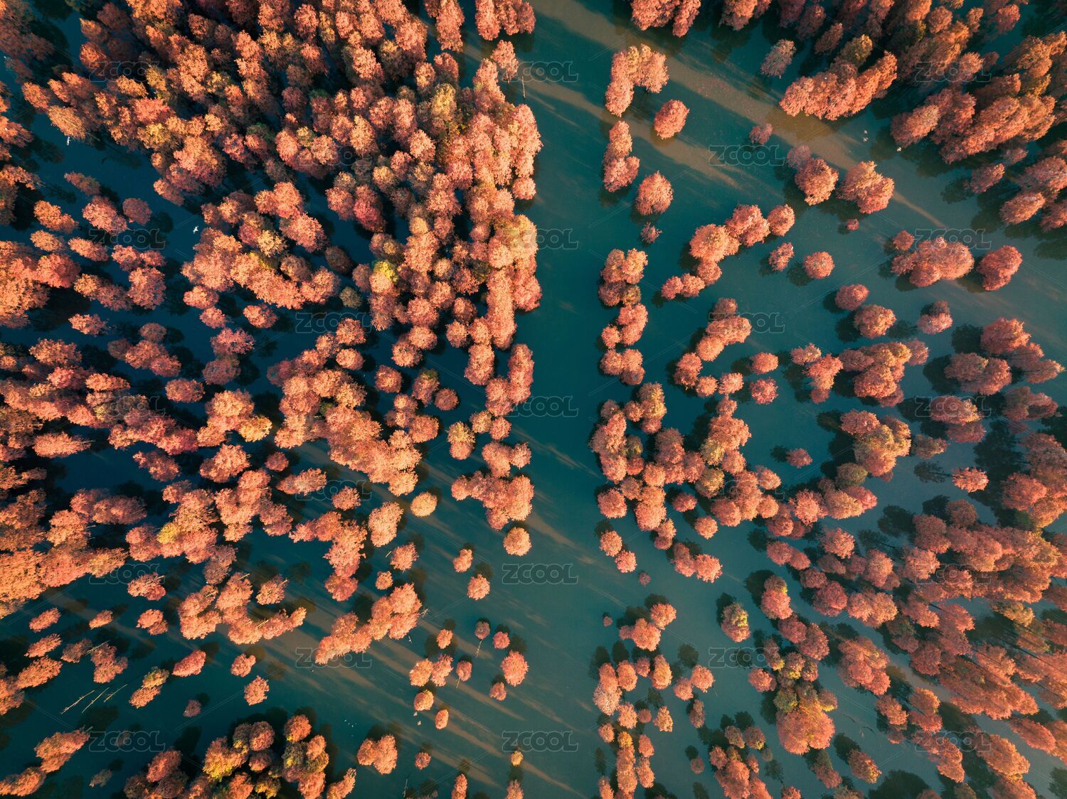 航拍宁波市余姚市四明湖水杉林红树林美景