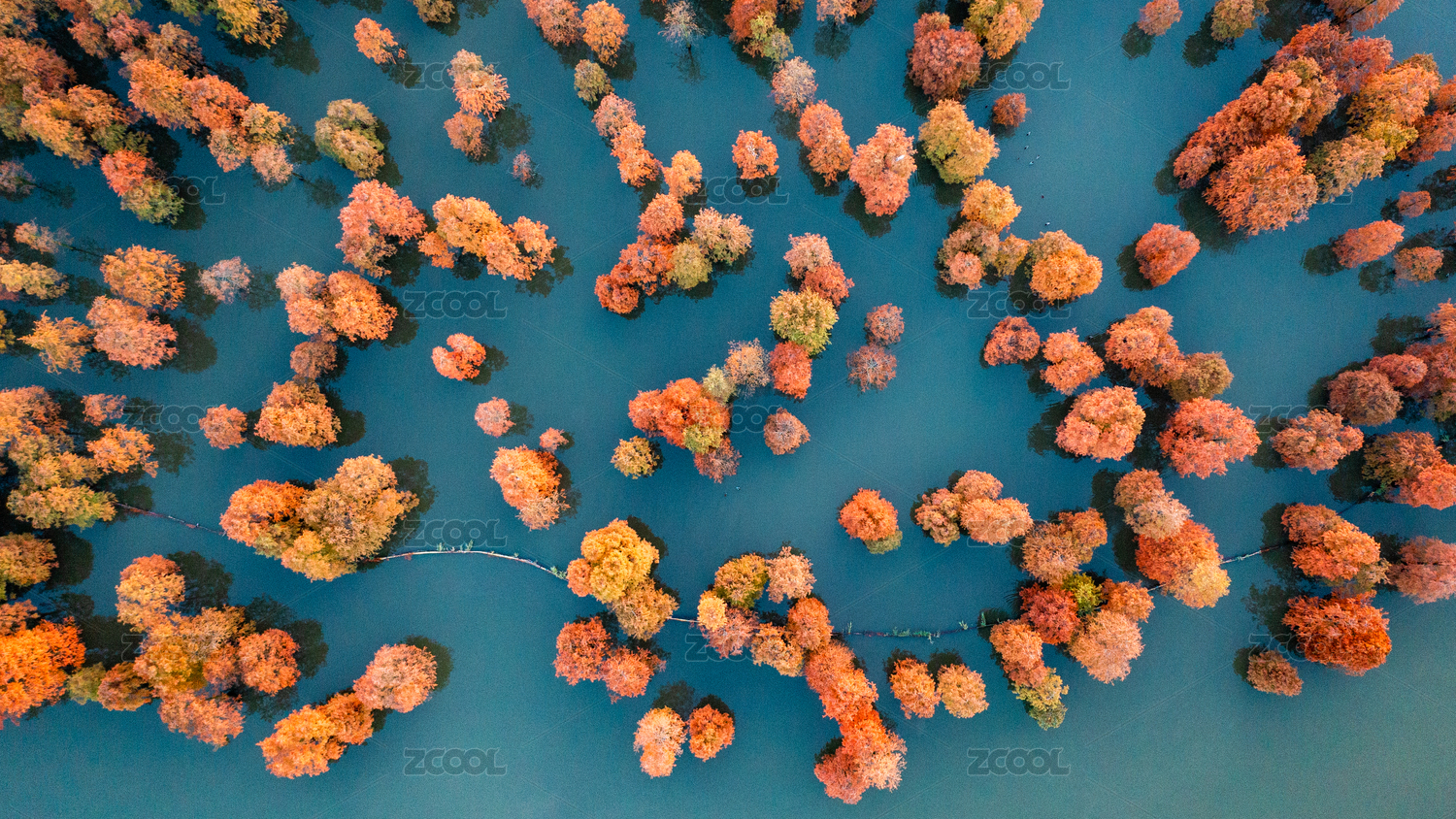 航拍中国安徽宣城宁国方塘秋天落羽杉