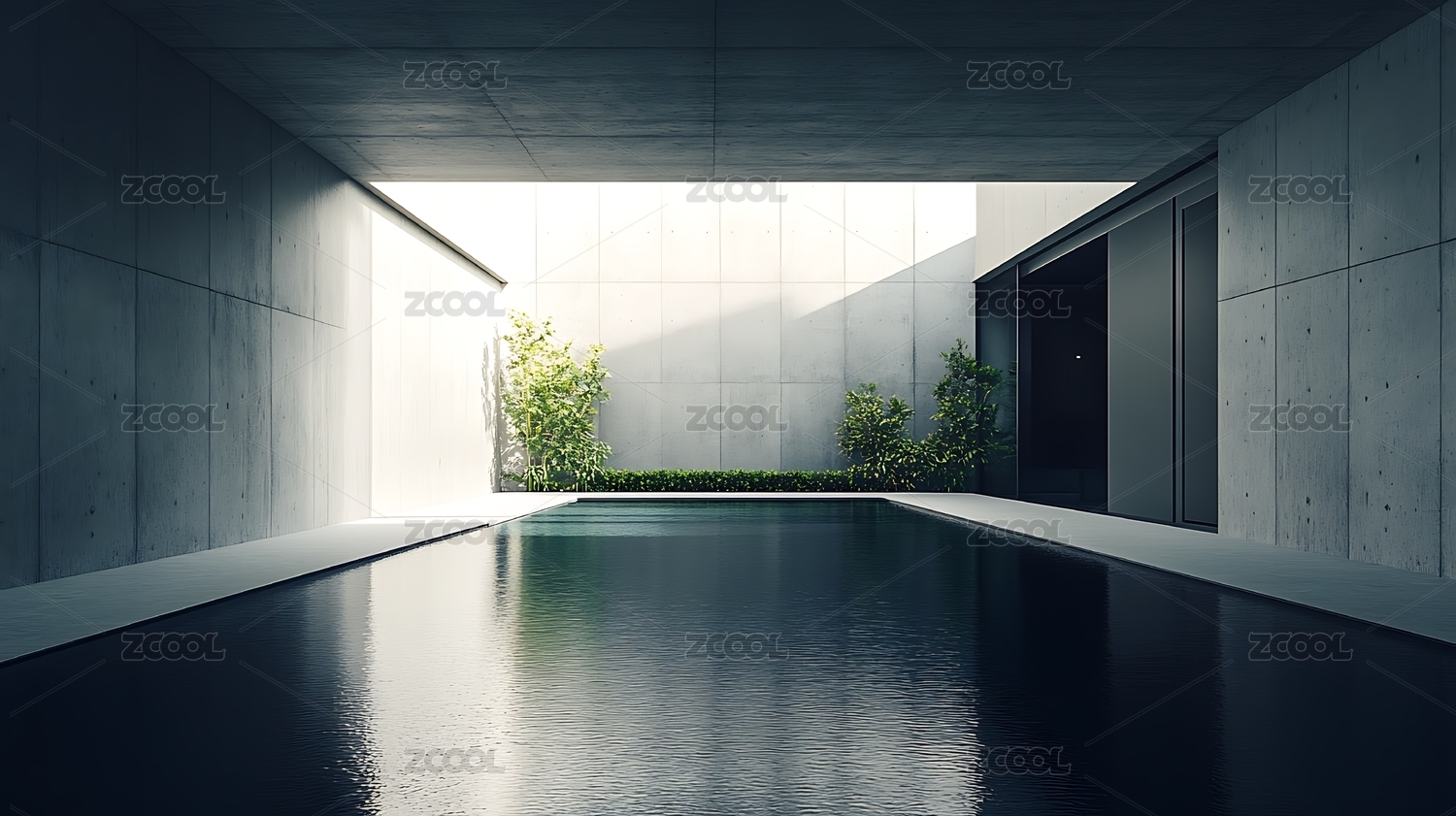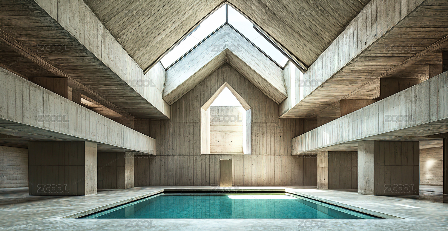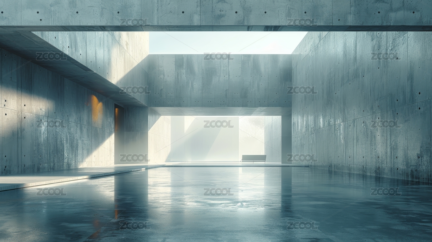 现代极简混凝土建筑室内空间