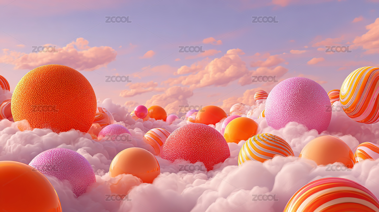 场景,背景,3D,立体,建模,植物,壁纸,蓝天,白云,气球