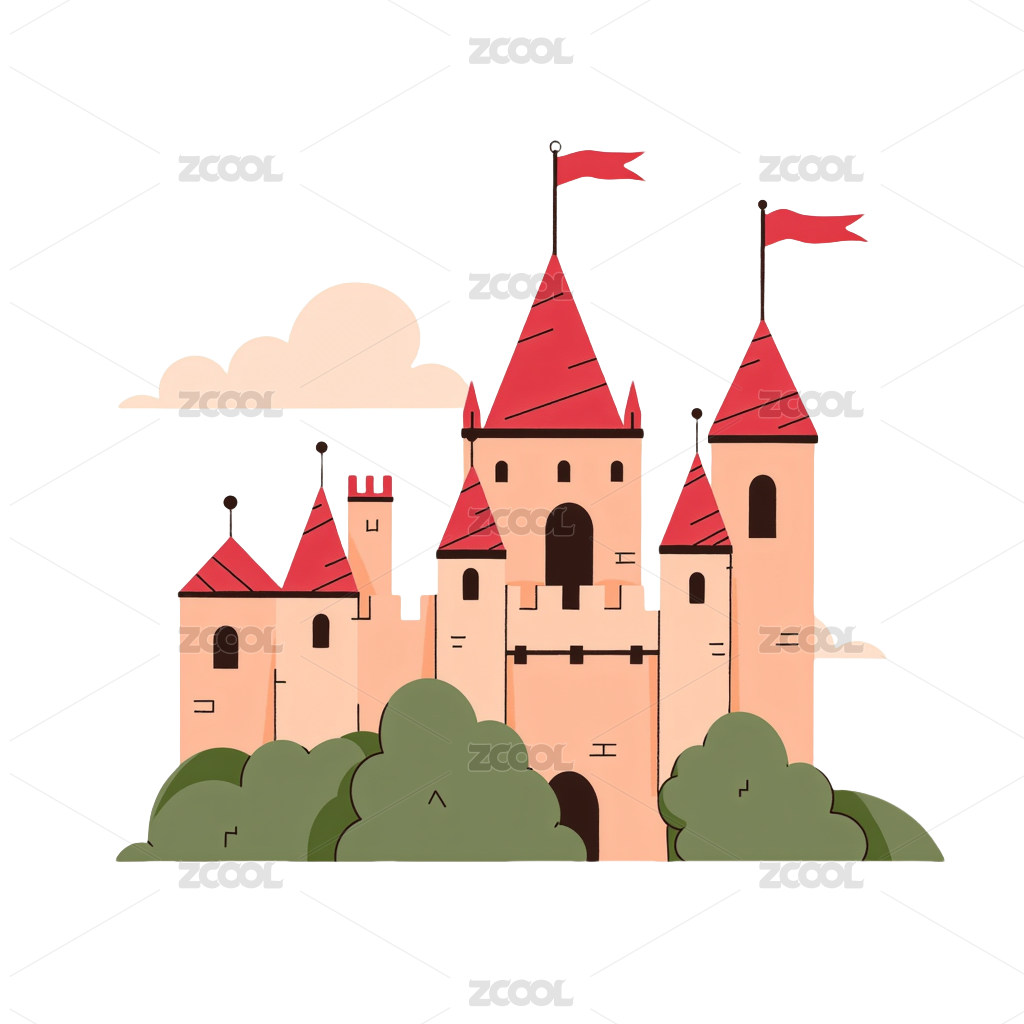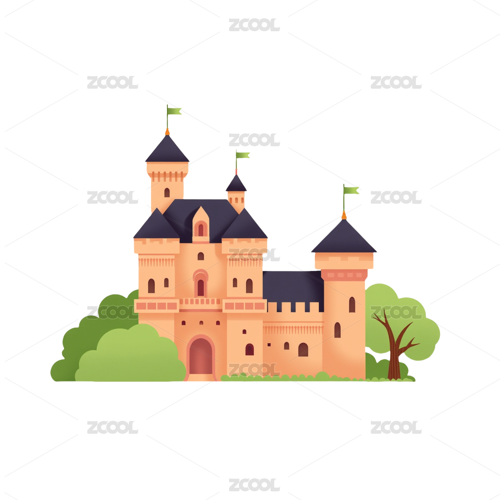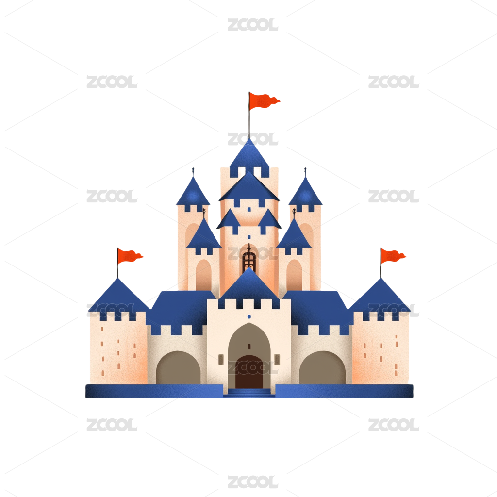 城堡,卡通,旗帜,城墙,砖墙,城门,欧式窗户,场景,建筑
