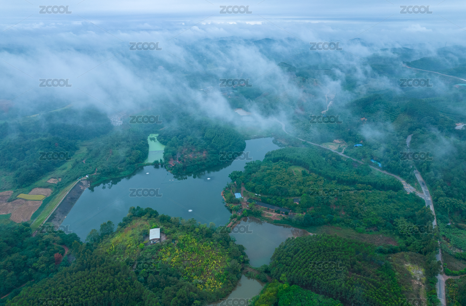 航拍中国安徽宣城市郎溪县天子湖云雾风光