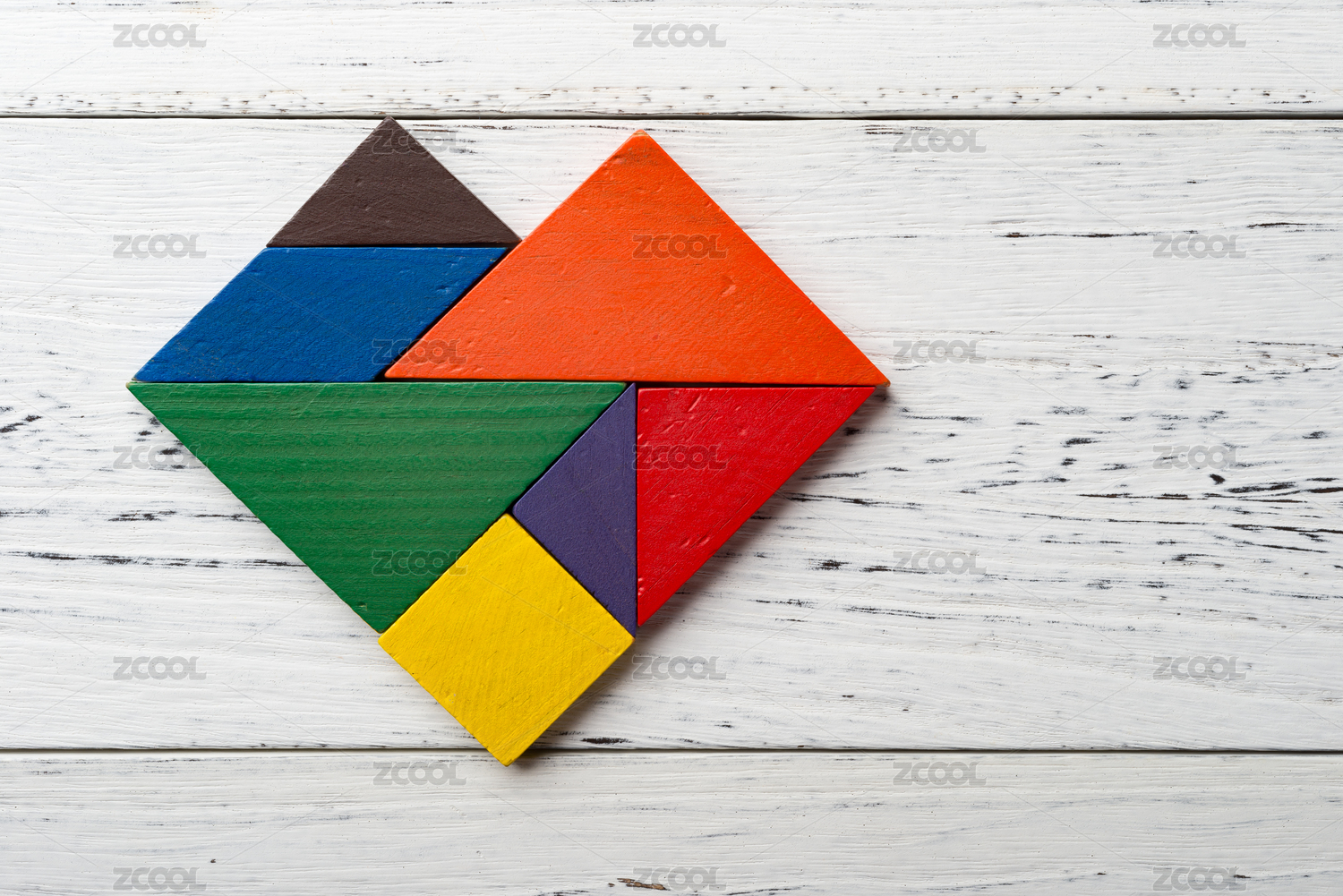 益智玩具七巧板摆放在桌面上特写