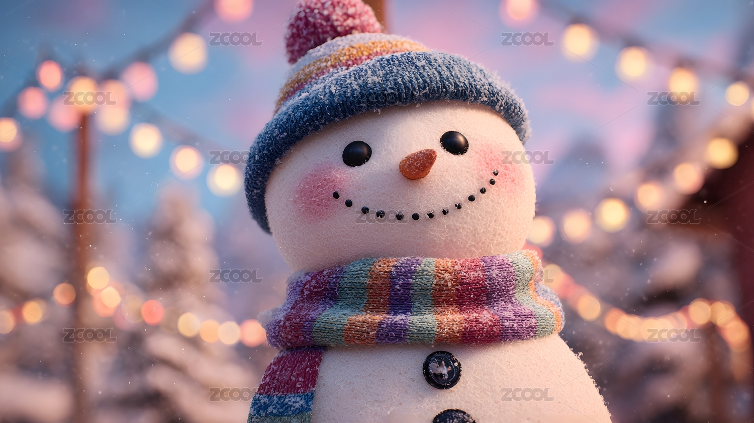 可爱雪人戴帽子围巾 圣诞节温馨场景
