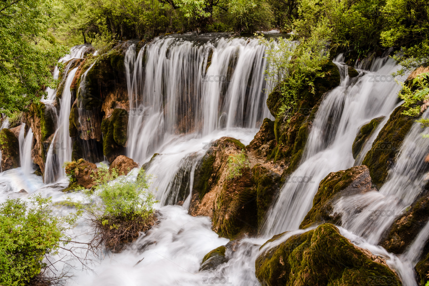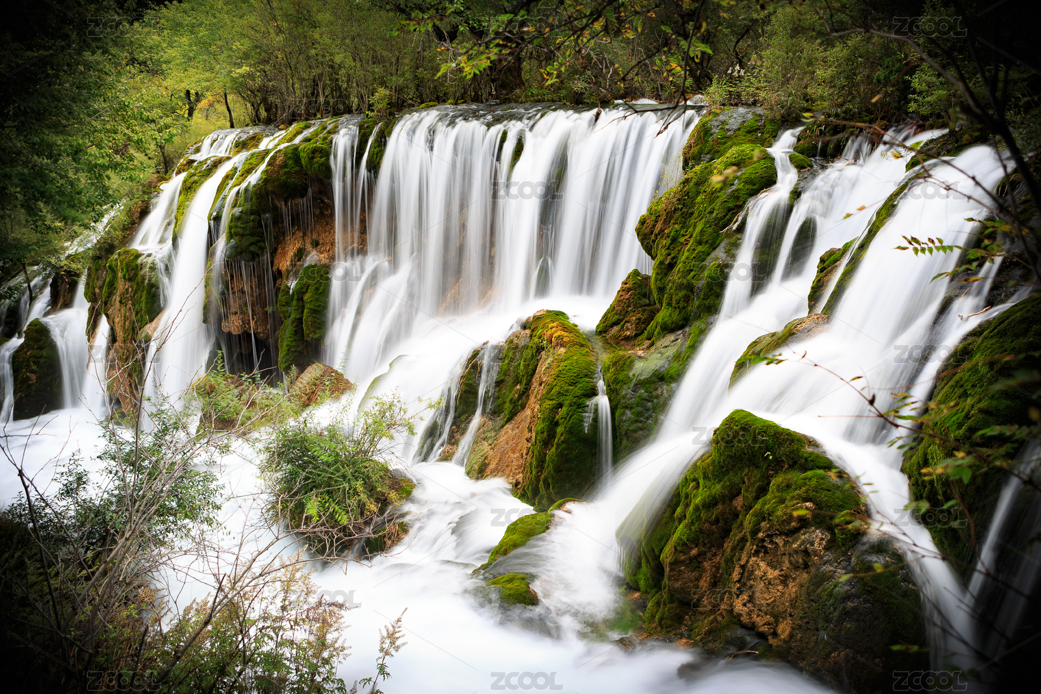中国四川省阿坝州九寨沟景区气势磅礴的瀑布
