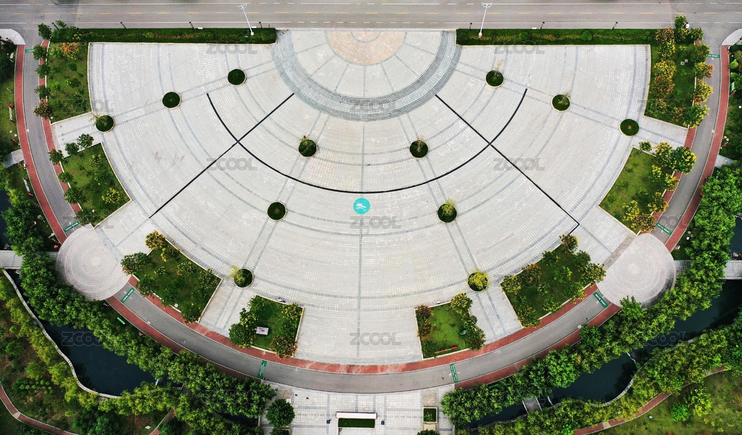 河北三河燕郊公园航拍下的中心广场瓷碗图案