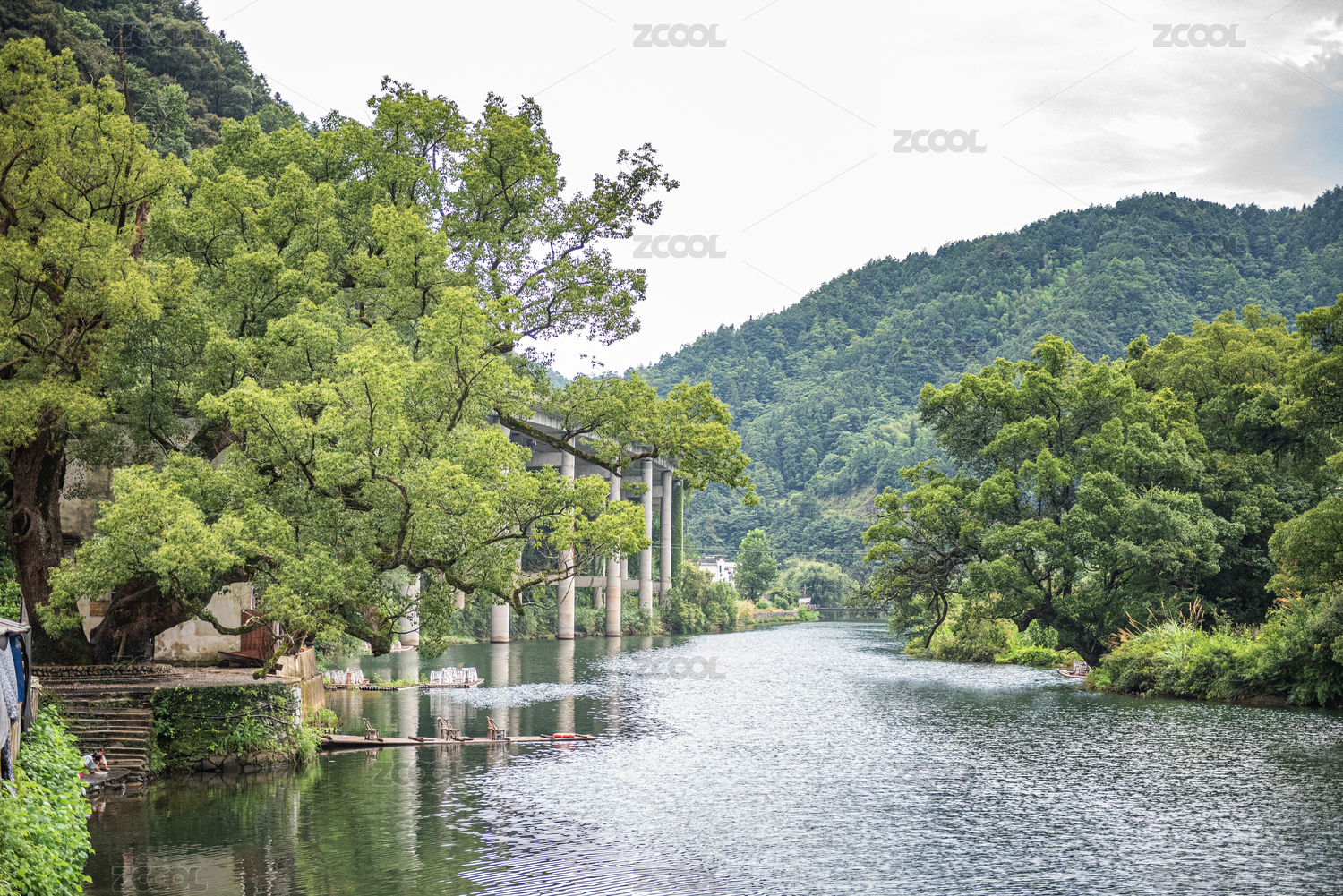 四川洪雅柳江古镇杨村河蜿蜒的重力坝自然景