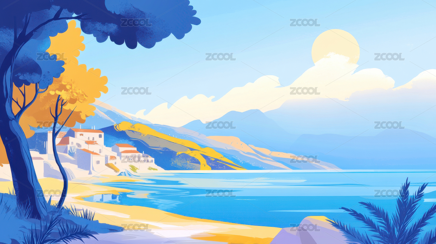 极简,海边,城市,小镇,seaside,插图,插画,旅游,度假,假期