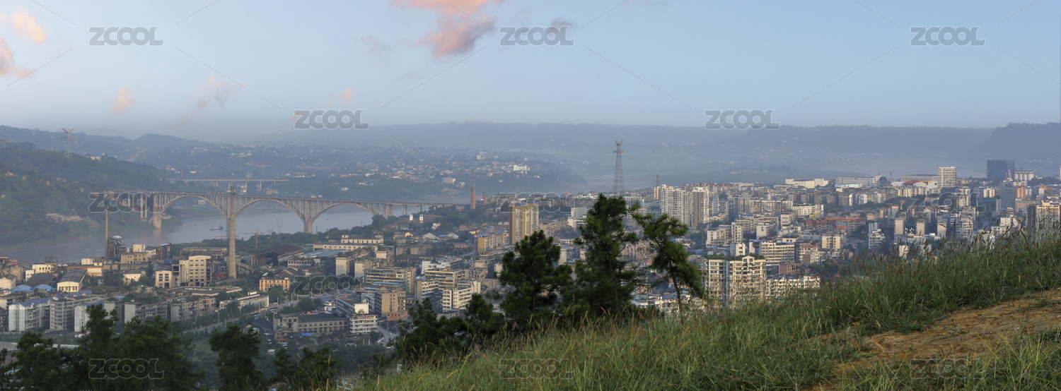 中国四川宜宾银昆高速金沙江大桥与城市建筑