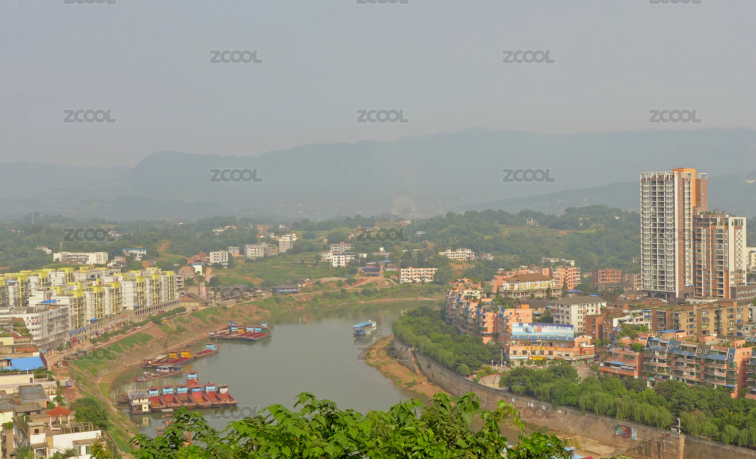 从灵翠山公园眺望溆浦县城和溆浦大桥