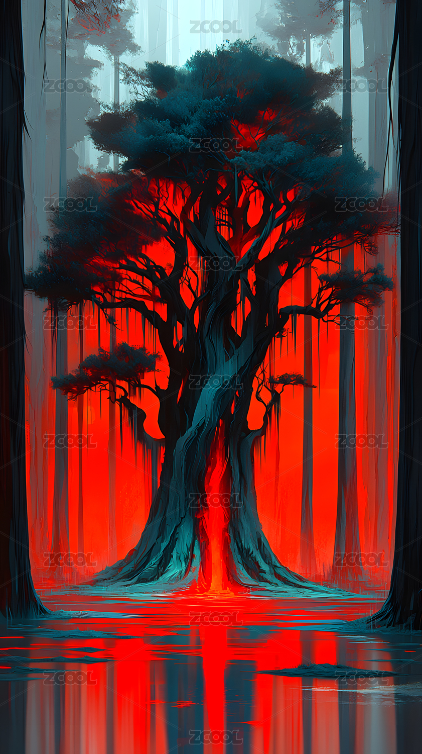 黑暗,森林,神话,漫画,自然,风景,背景,图案,树,云