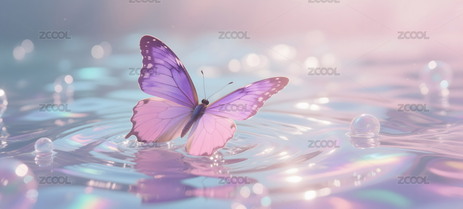 数码海中紫色蝴蝶场景抽象图形海报网页背景