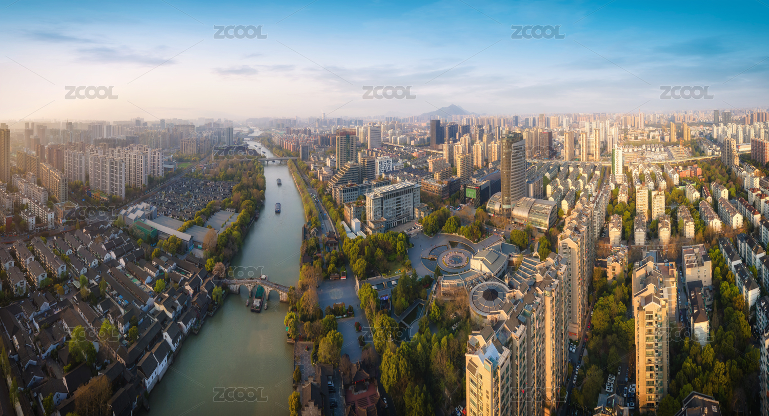 浙江省杭州市武林门大运河晨曦航拍