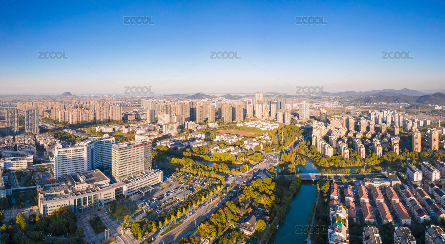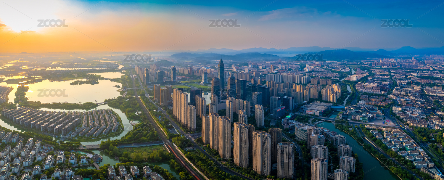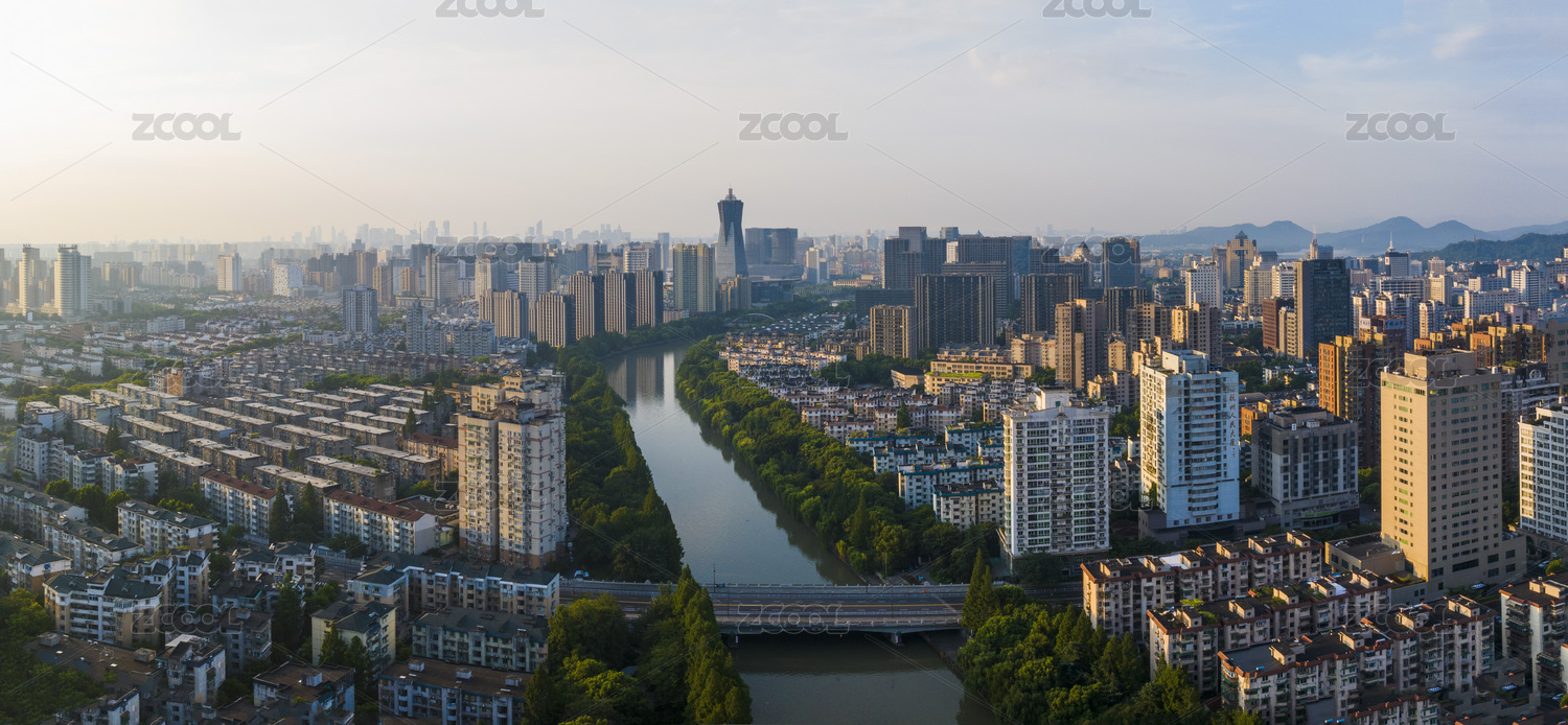 余姚,航拍视角,城市,河流,建筑,傍晚,风光