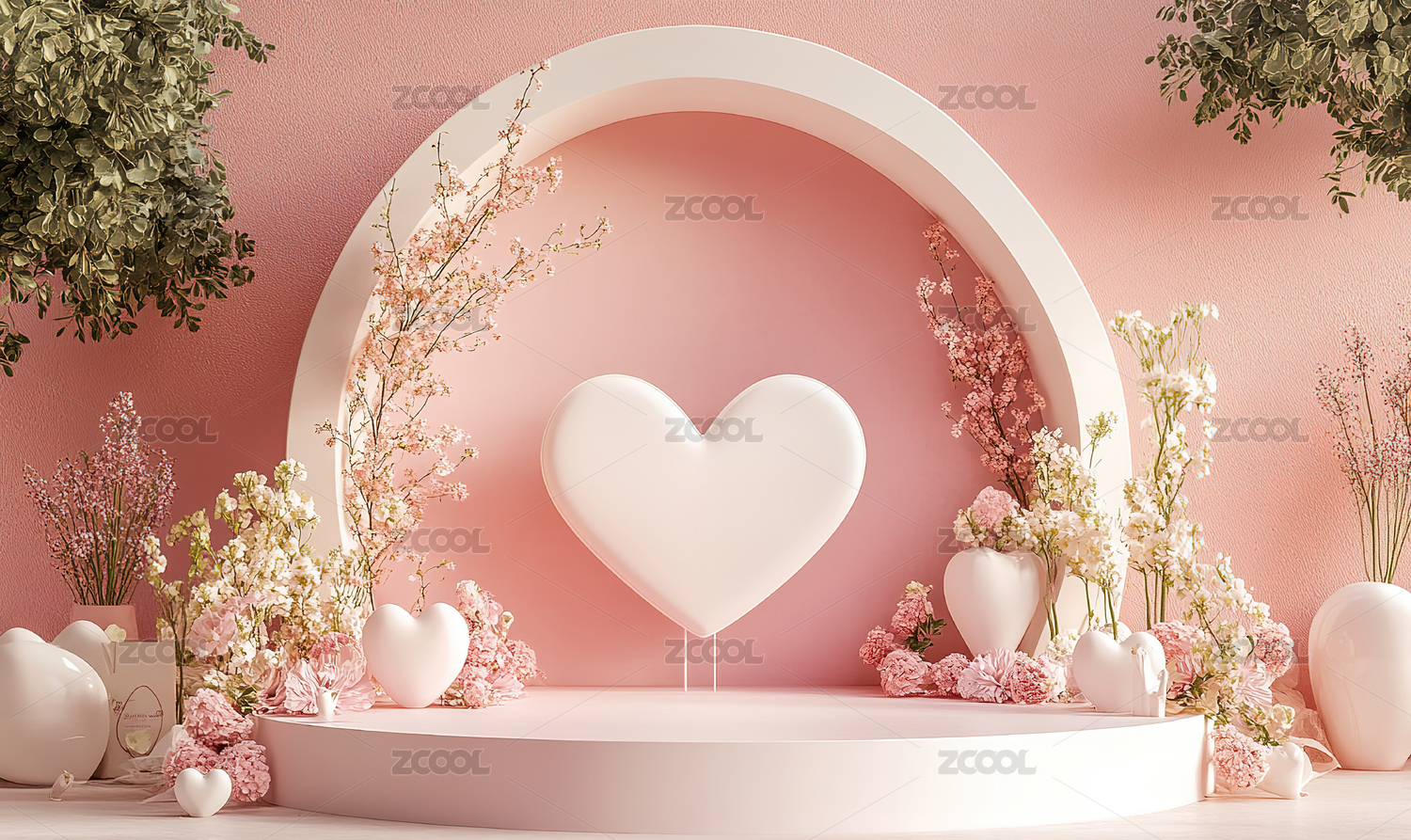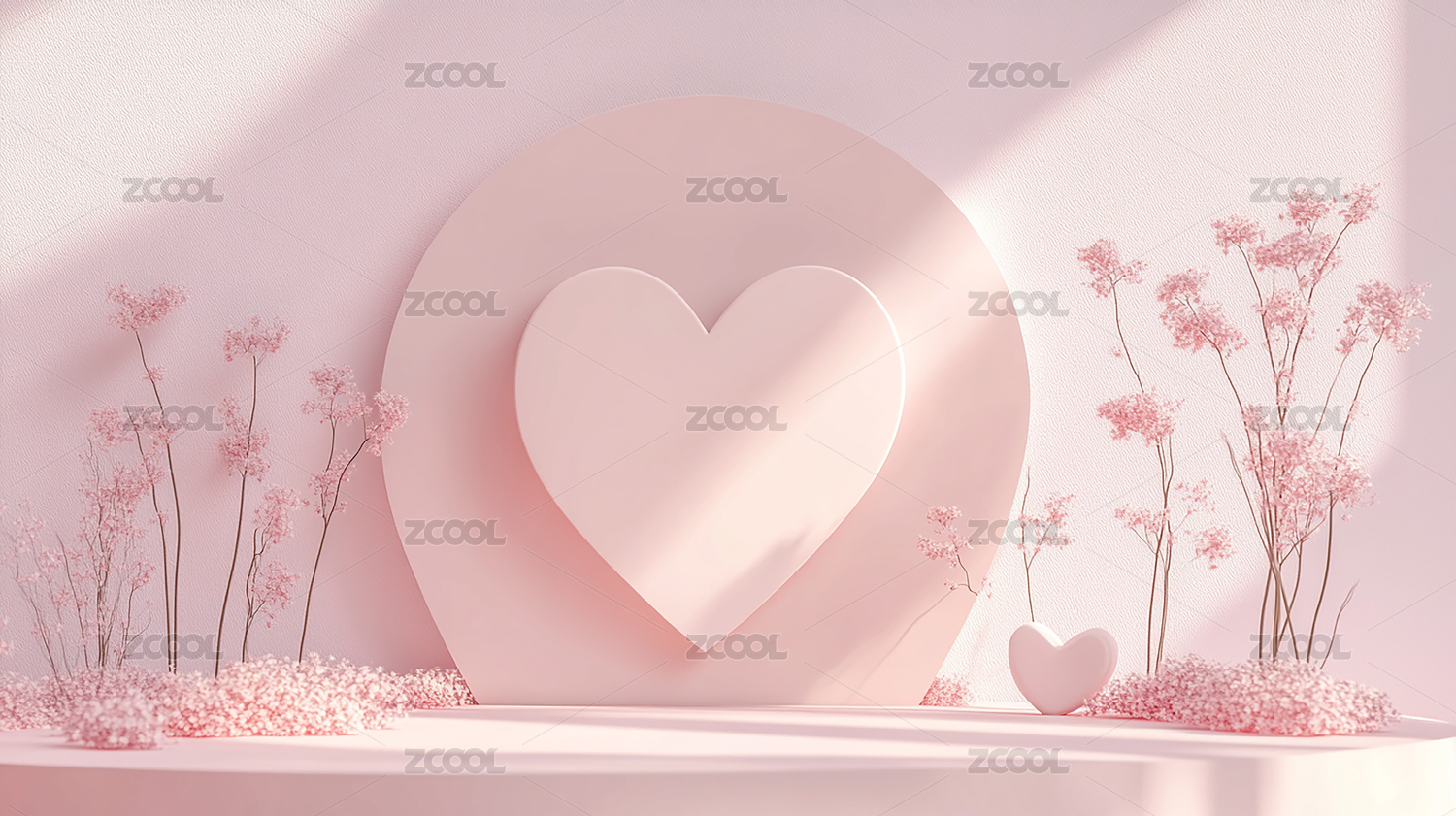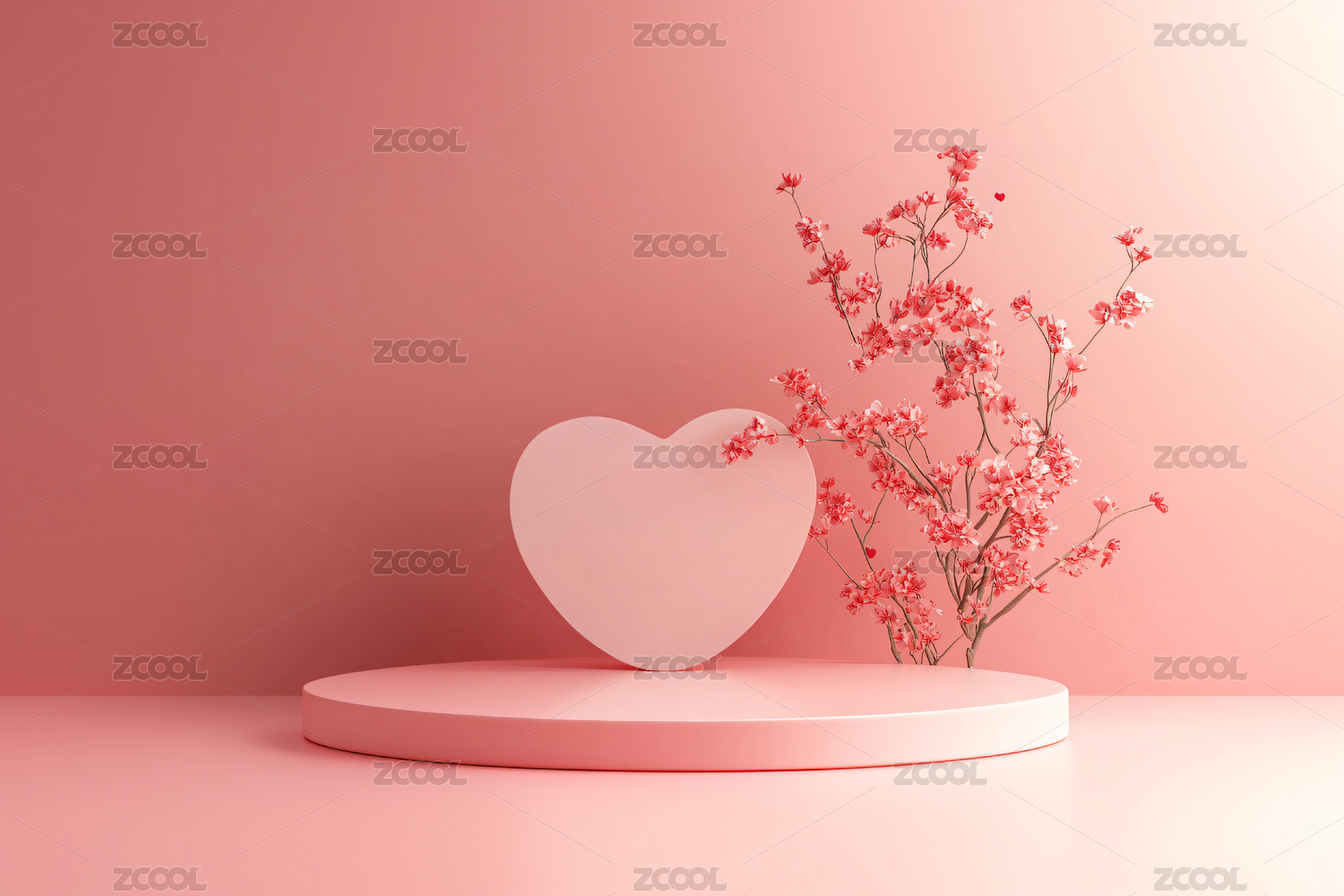 情人节,展台,气氛,讲台,粉红色,心形,产品,展示,光线,简约