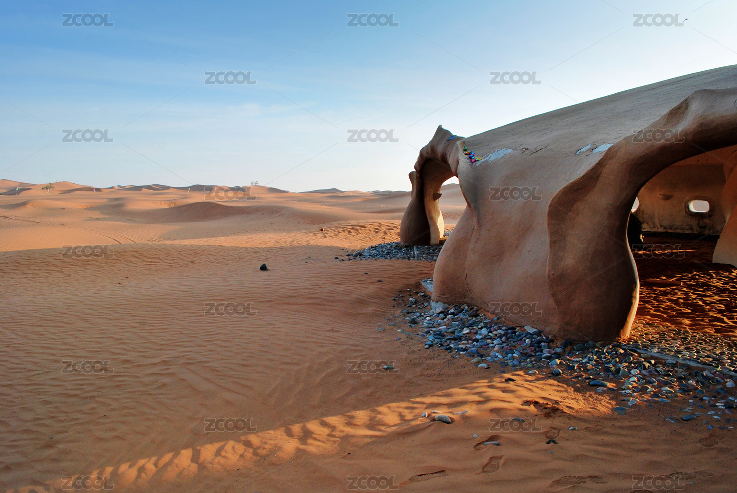 宁夏沙坡头沙漠风景唯美摄影石头房