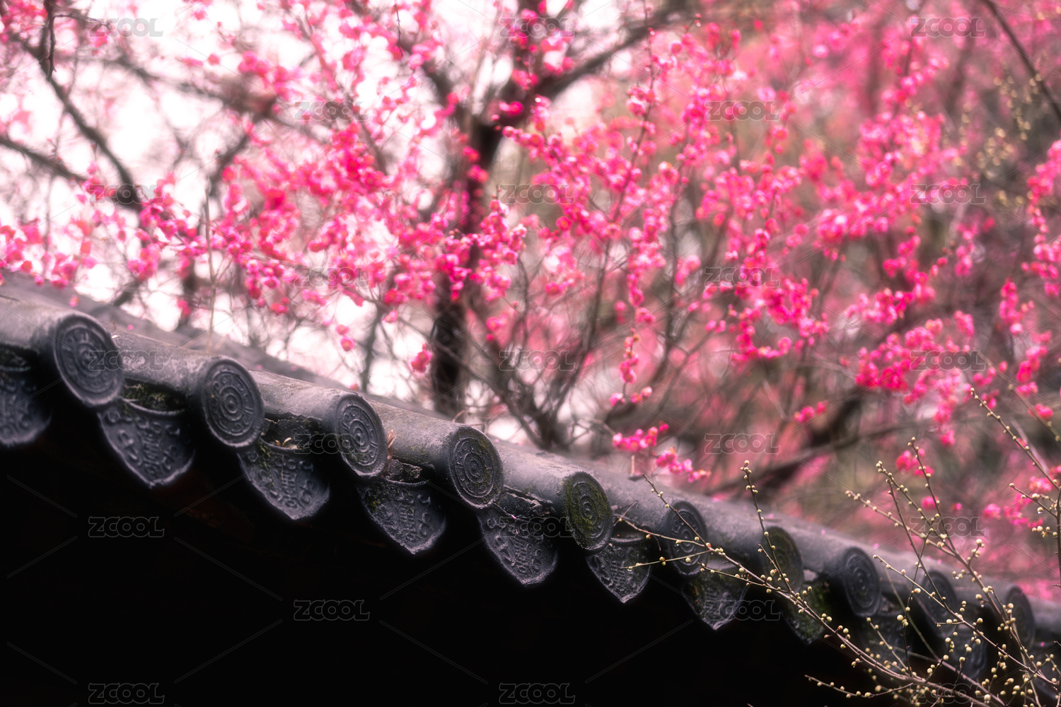 杭州 古风 下雨天 屋檐 梅花 腊梅