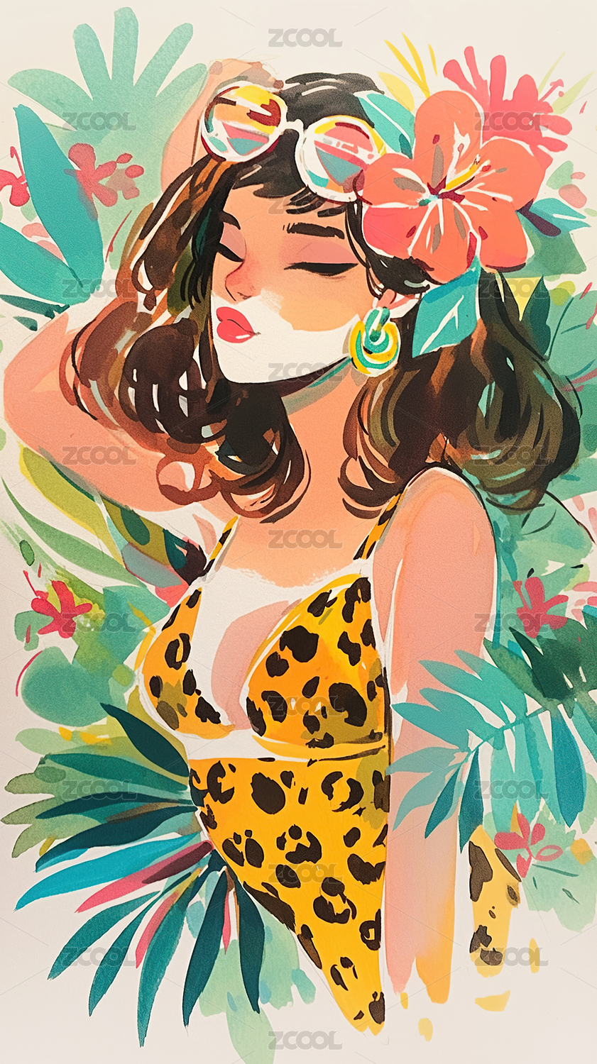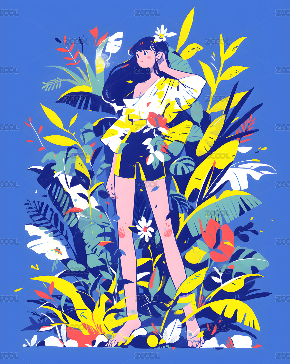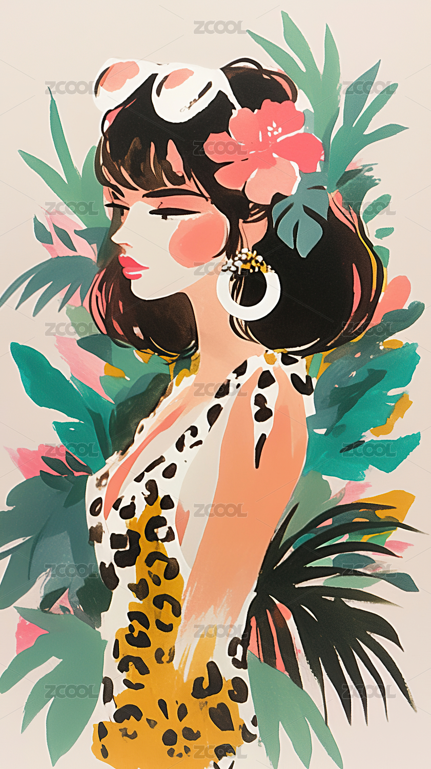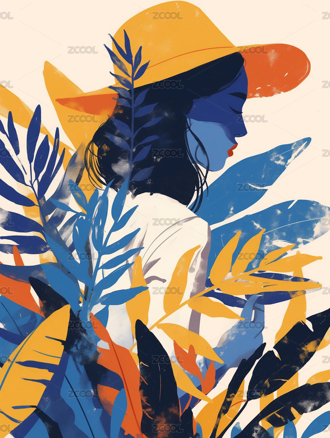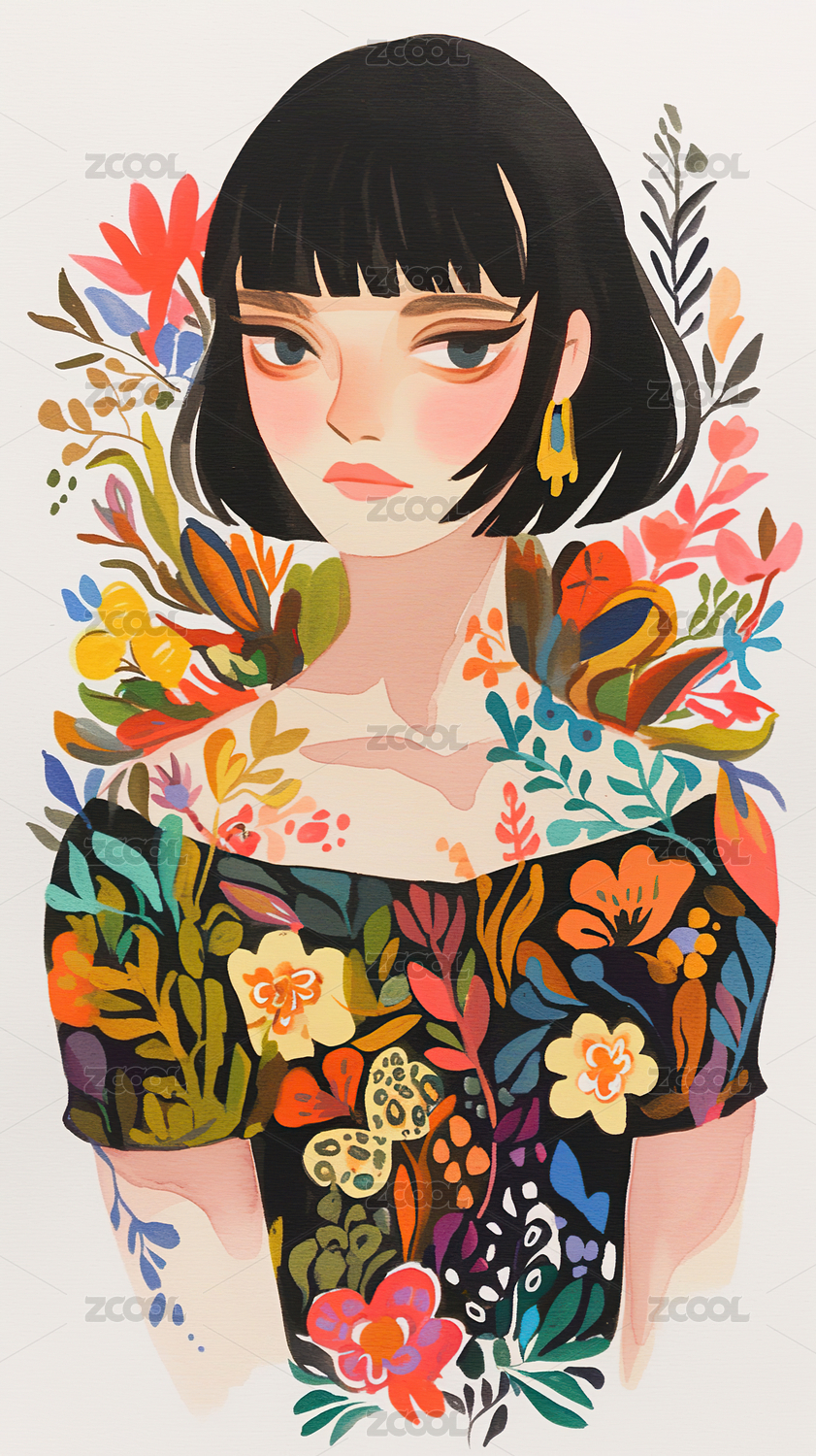 AIGC202404,少女,植物,花卉,装饰画,装饰,包装,插图,复古,插画
