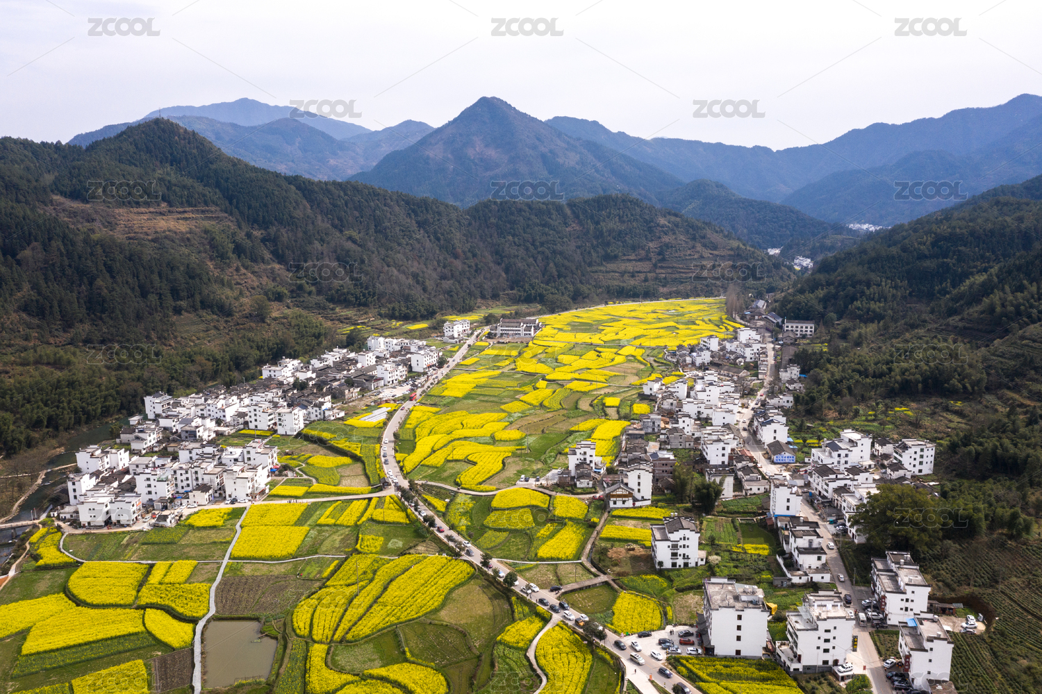 中国江西省婺源县官坑油菜花航拍