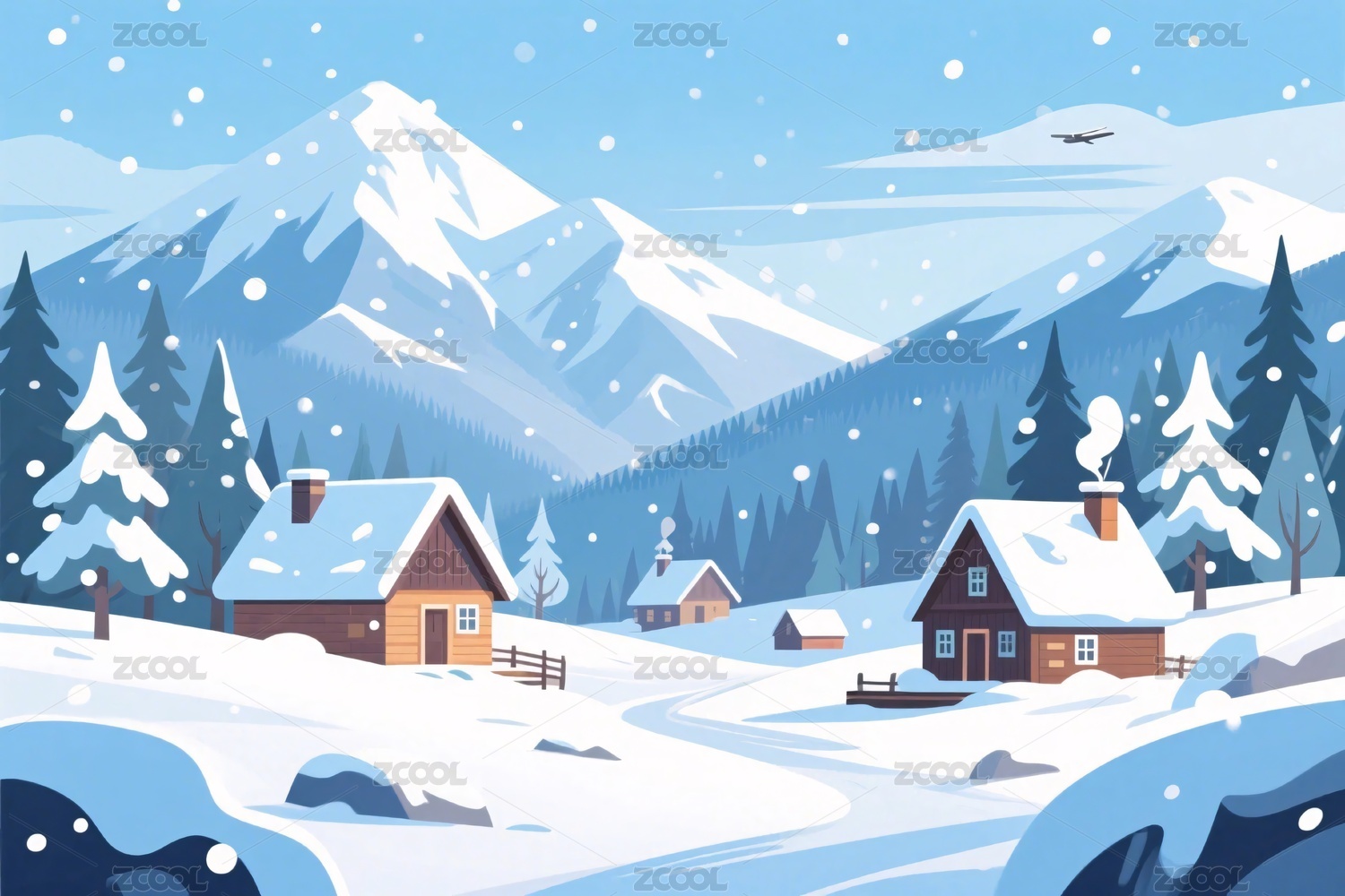 冬季传统节气风景被厚厚积雪覆盖的村庄