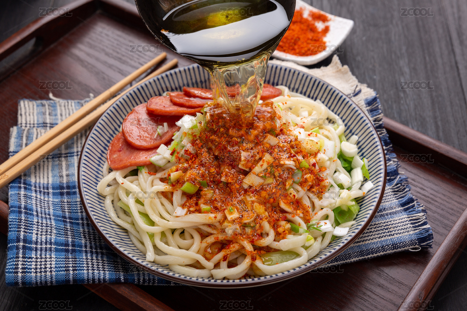 一盘拉条上泼油的过程