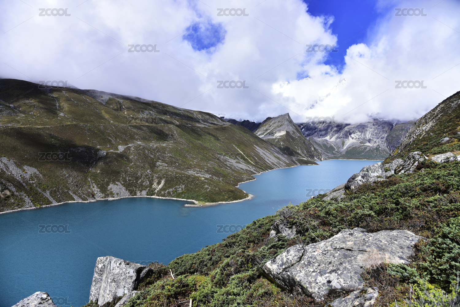 中国西藏山南库拉岗日神山脚下的白玛林措湖