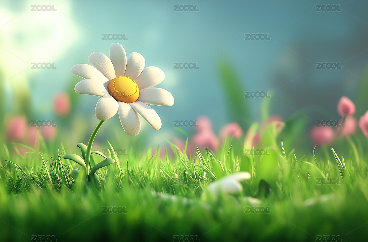 粉色雏菊,绿草,蓝天,白云,宁静,美景,自然风光,春天,夏天,清新