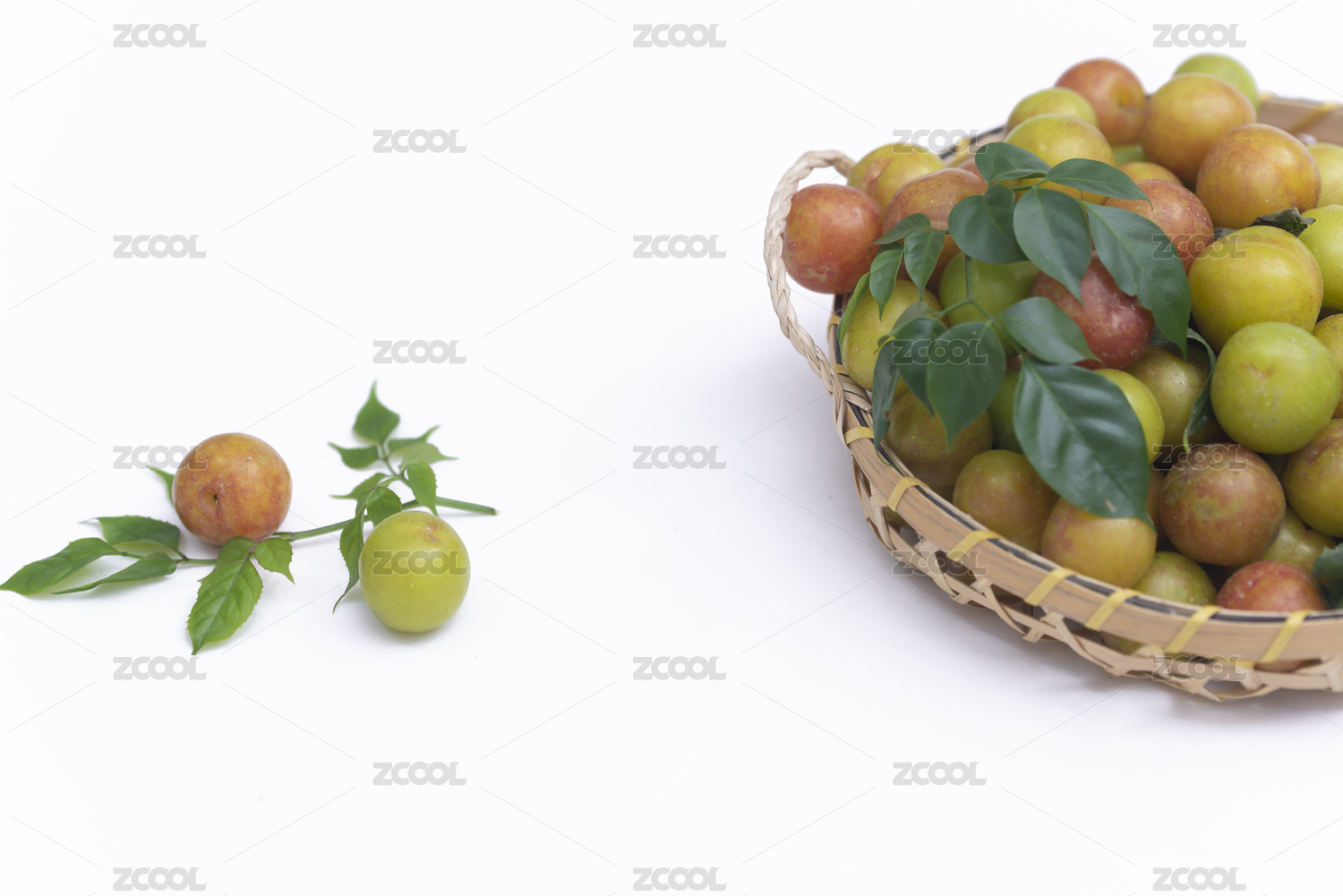 茵红李,绿叶子,白色背景