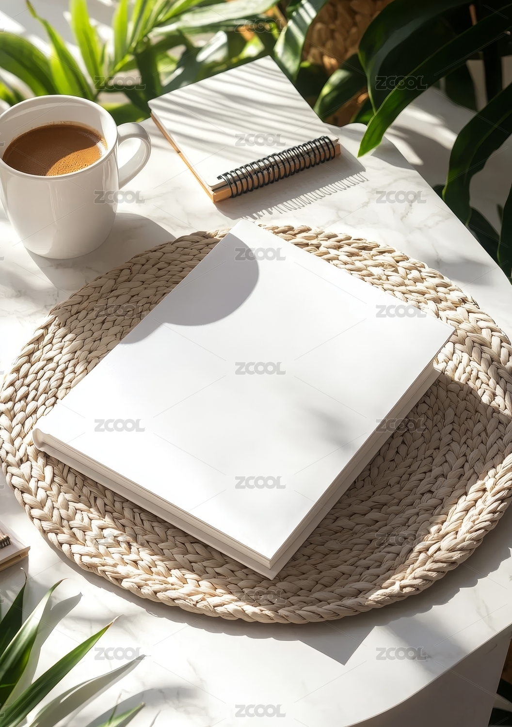 白色书本与咖啡杯的静物组合