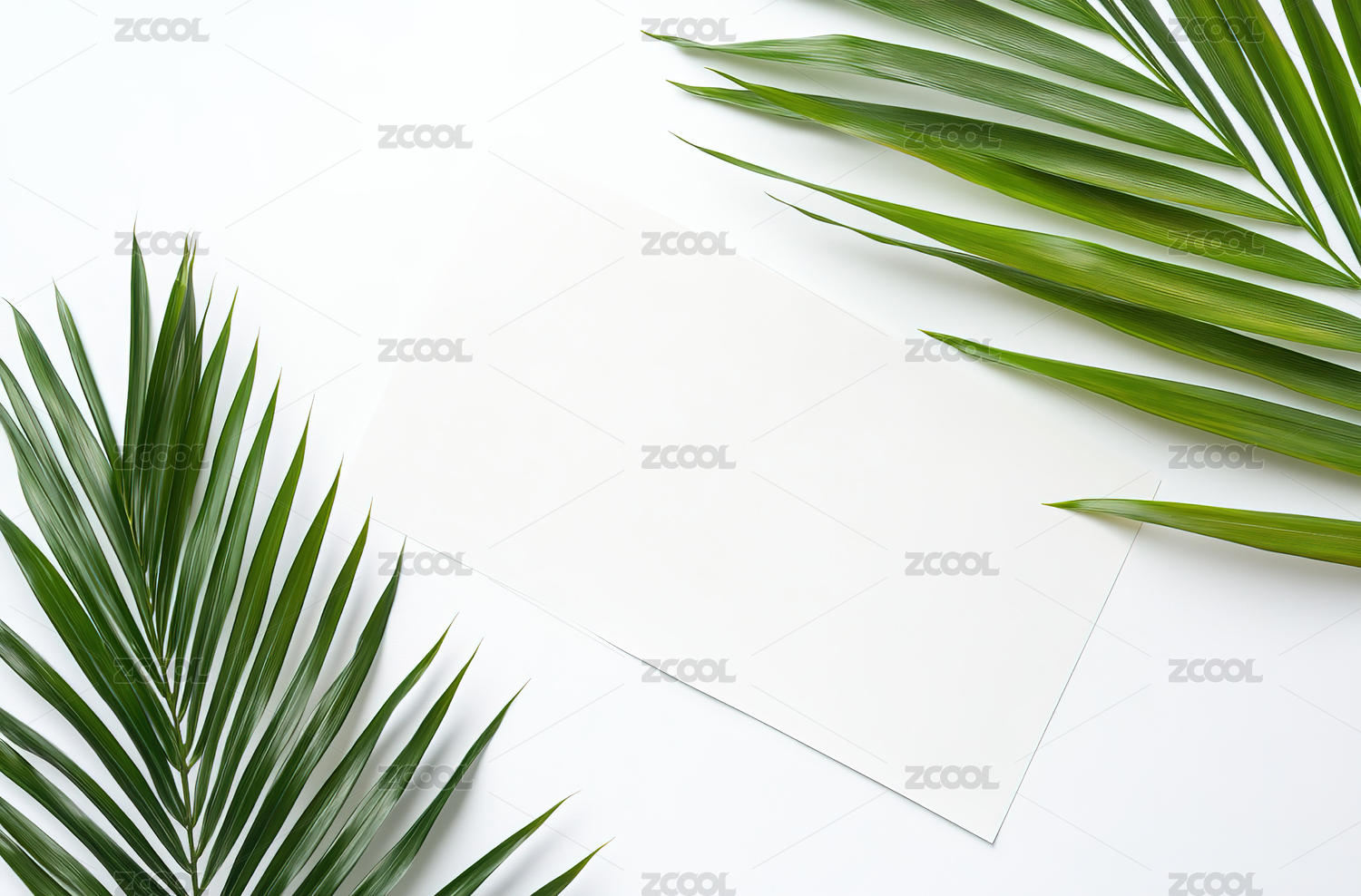 绿色的棕榈叶上白色卡片