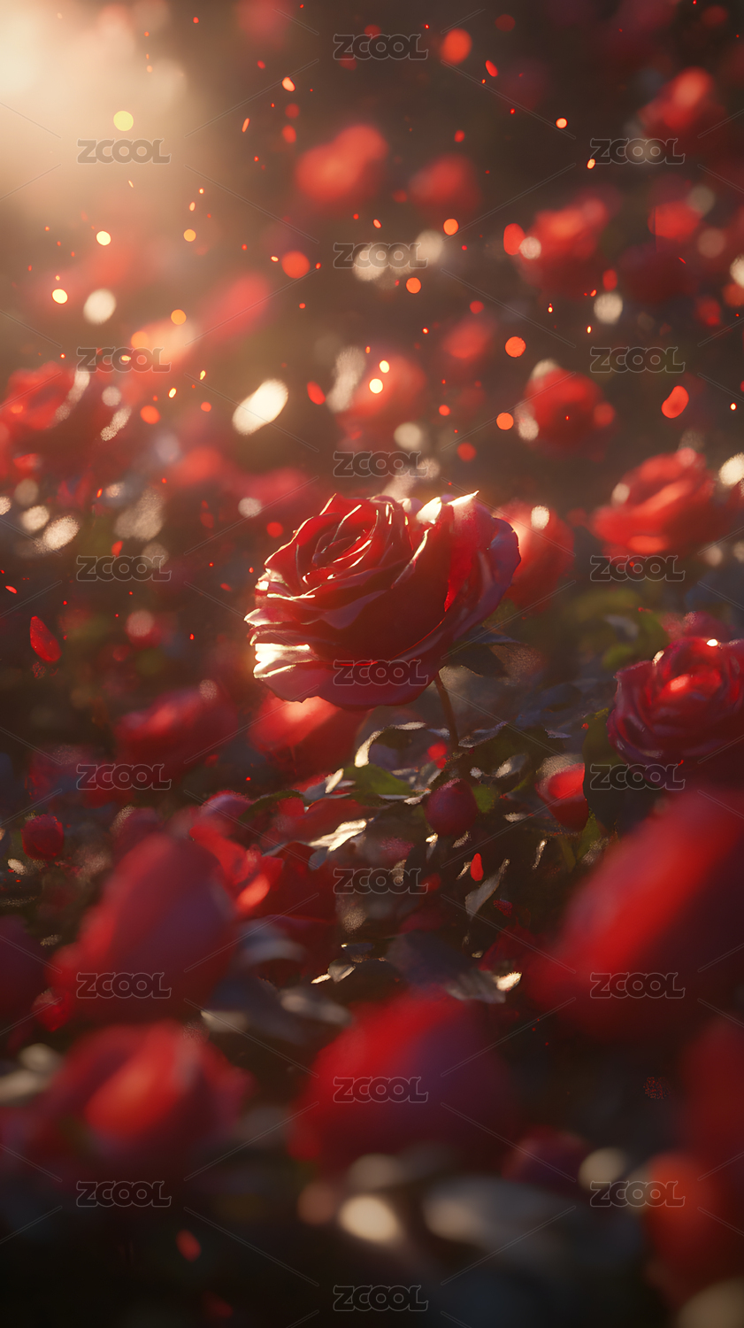 红玫瑰丛林光影