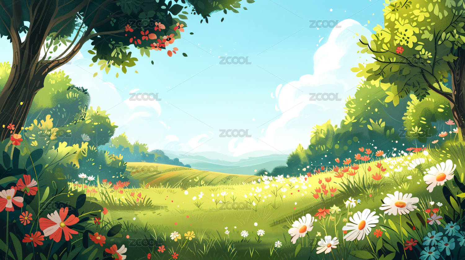 绿色,卡通,动漫,鲜花,草地,抽象,背景,设计
