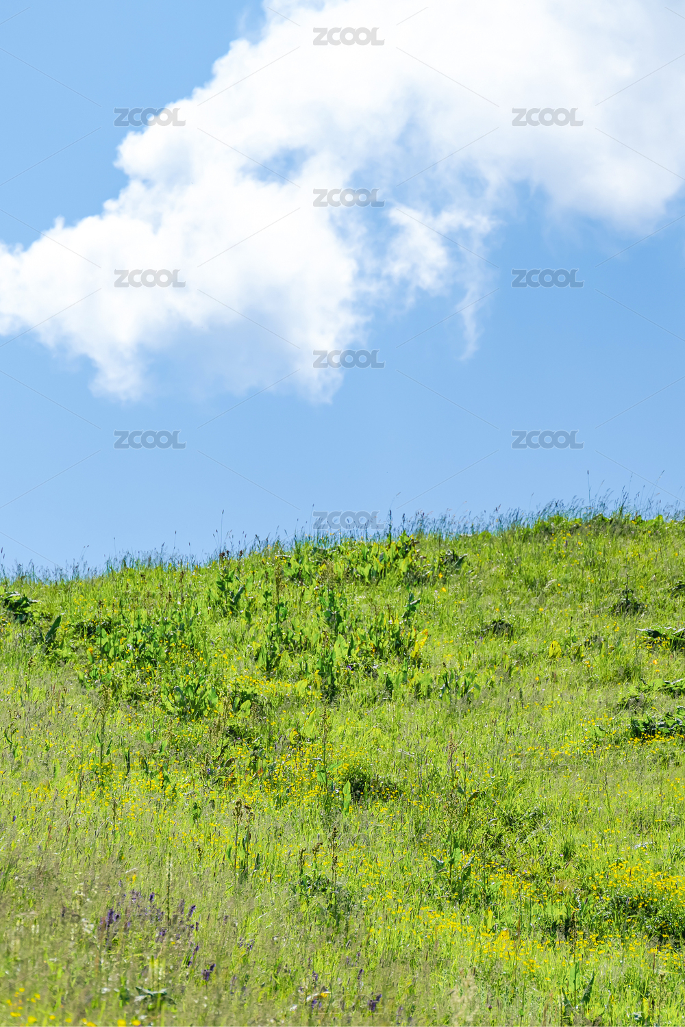 中国新疆,蓝天白云下,仰视那拉提草原景色