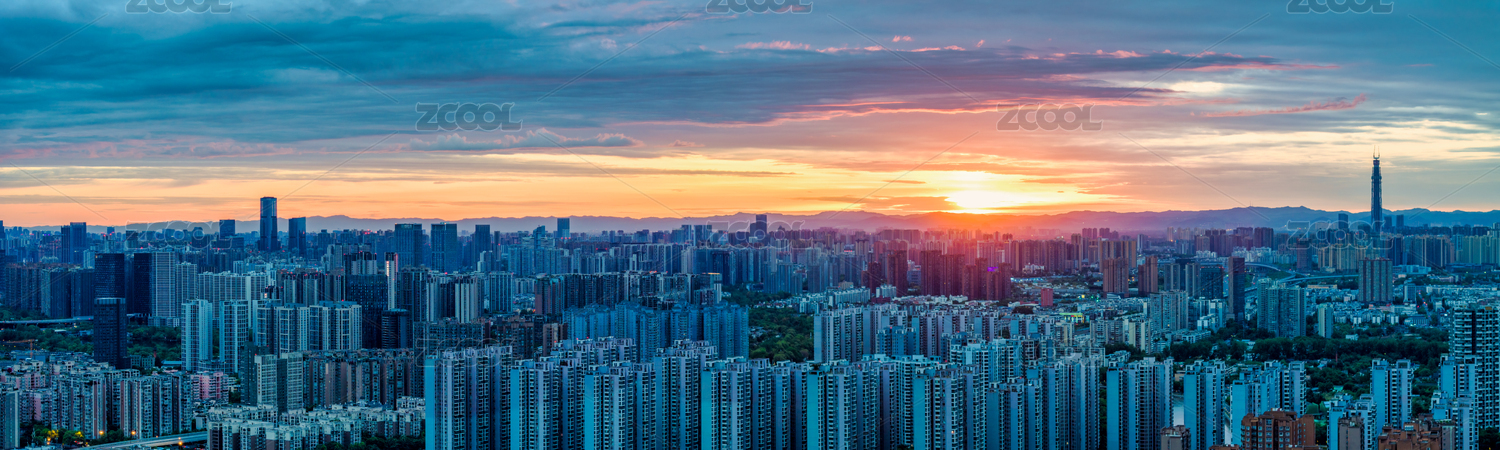 朝霞中的成都城市住房