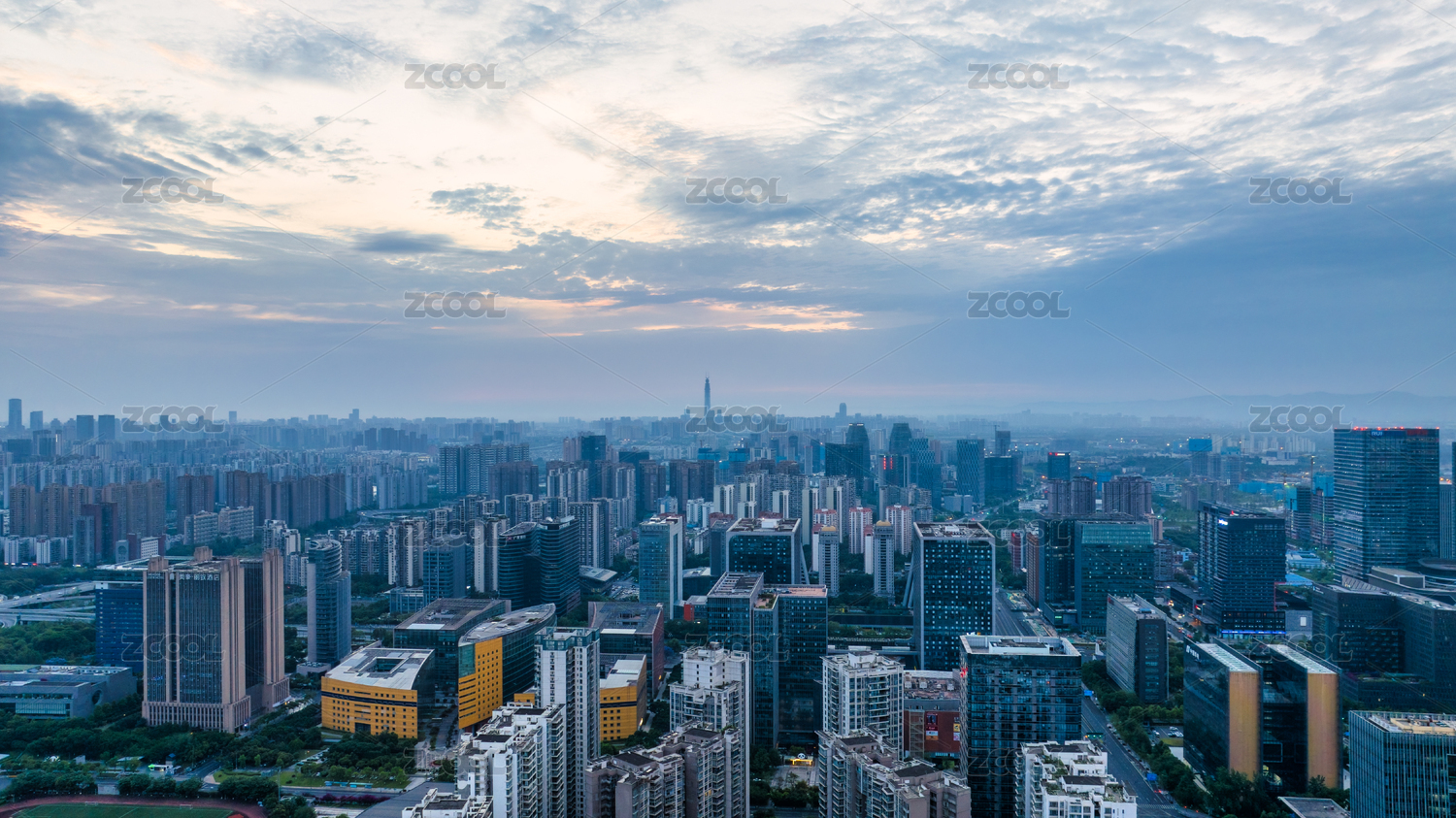 成都高新区城市航拍清晨天空