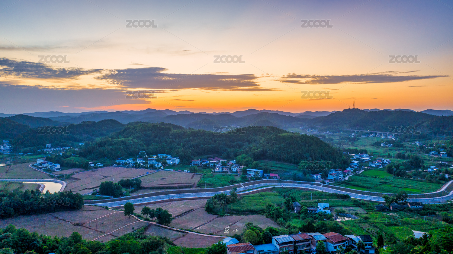 夕阳,天空,丘陵地区,农业,农田,种地,乡村,农村,德阳市苍山镇,四川乡村