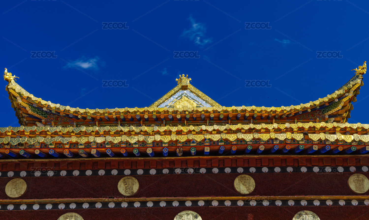 四川阿坝州松潘川主寺寺庙建筑和屋顶