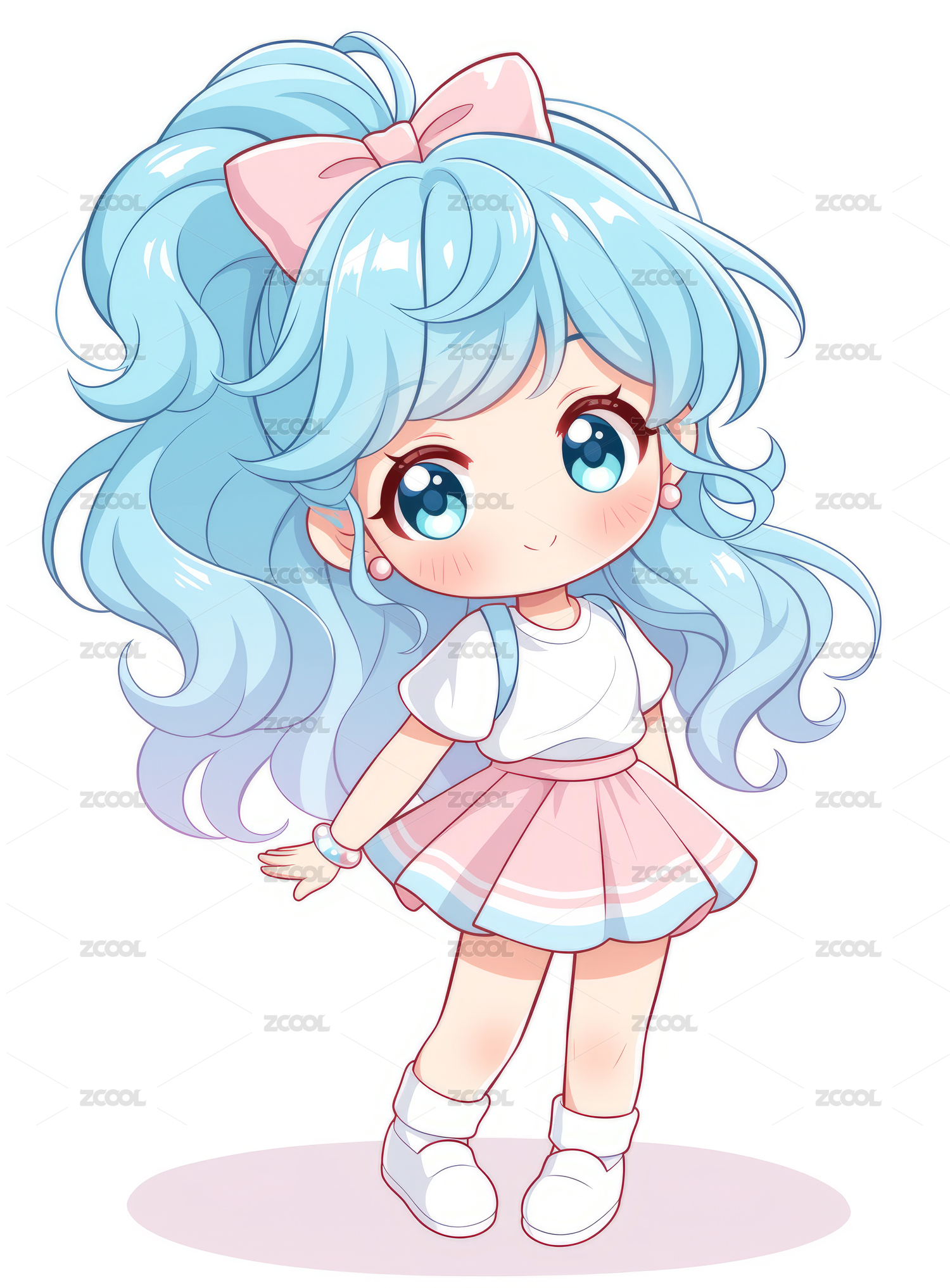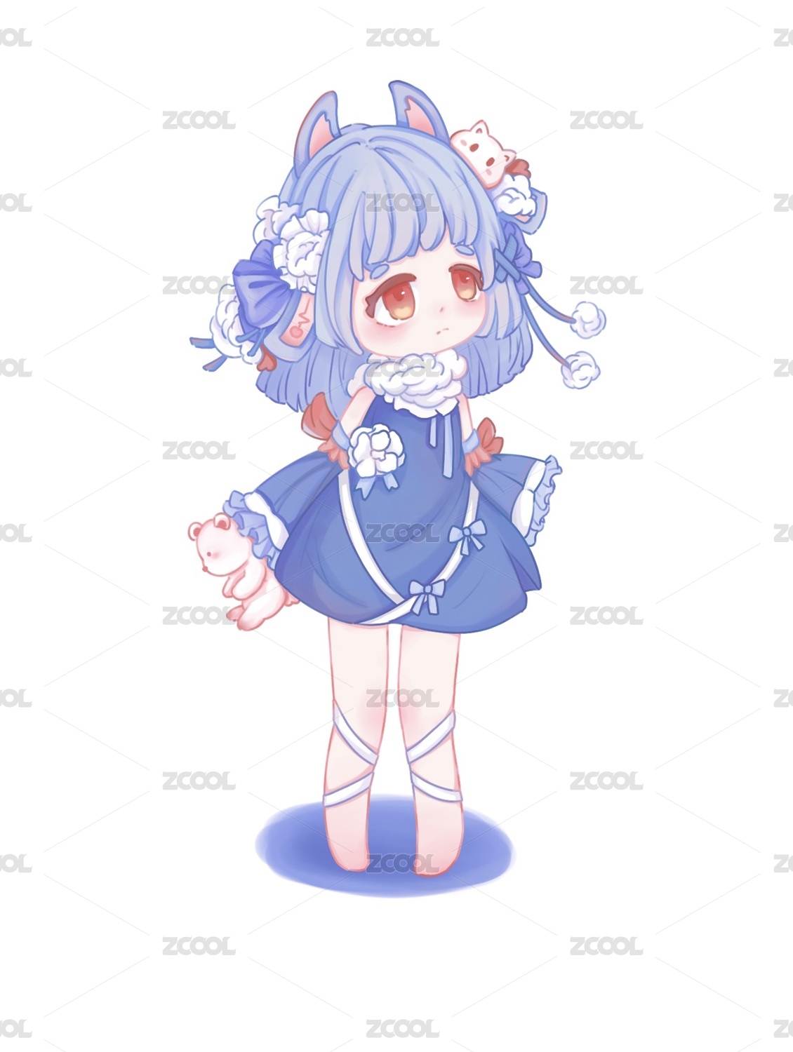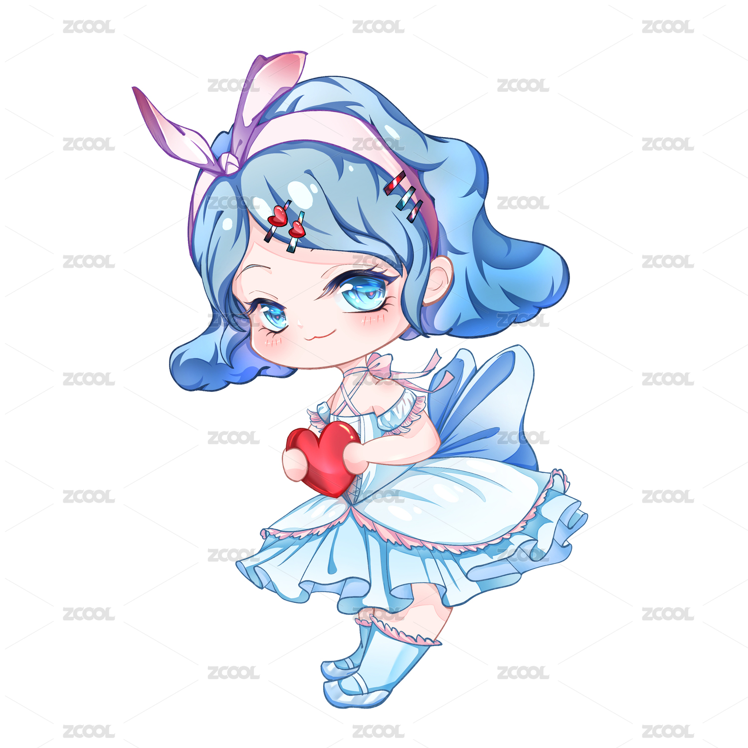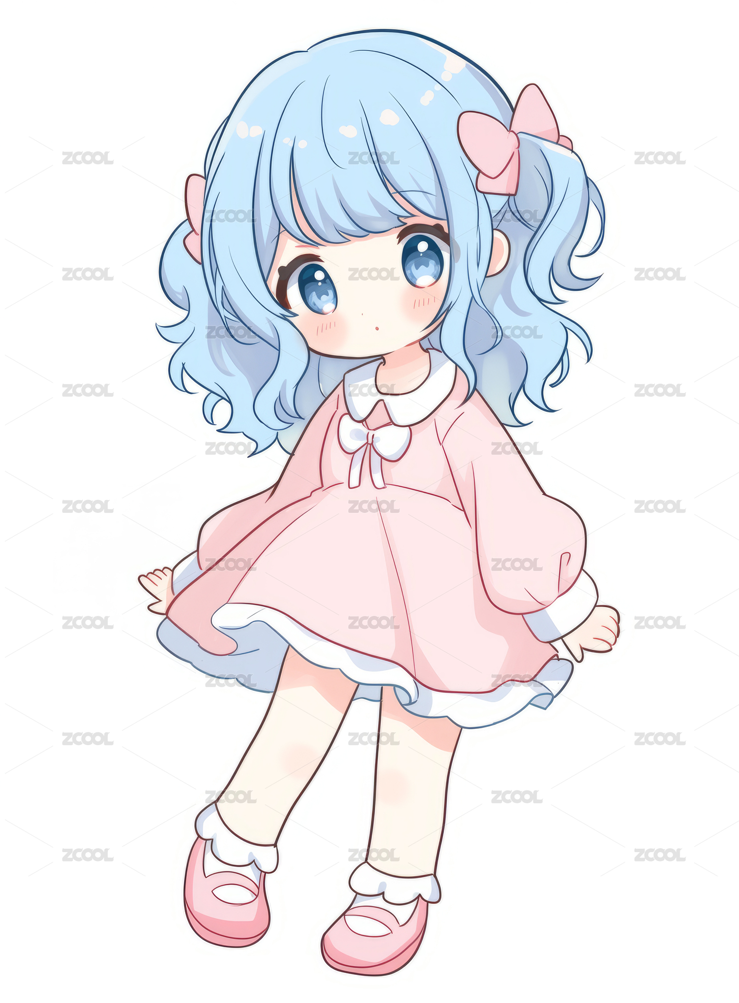 Q版蓝色裙子吉祥物ip形象女孩
